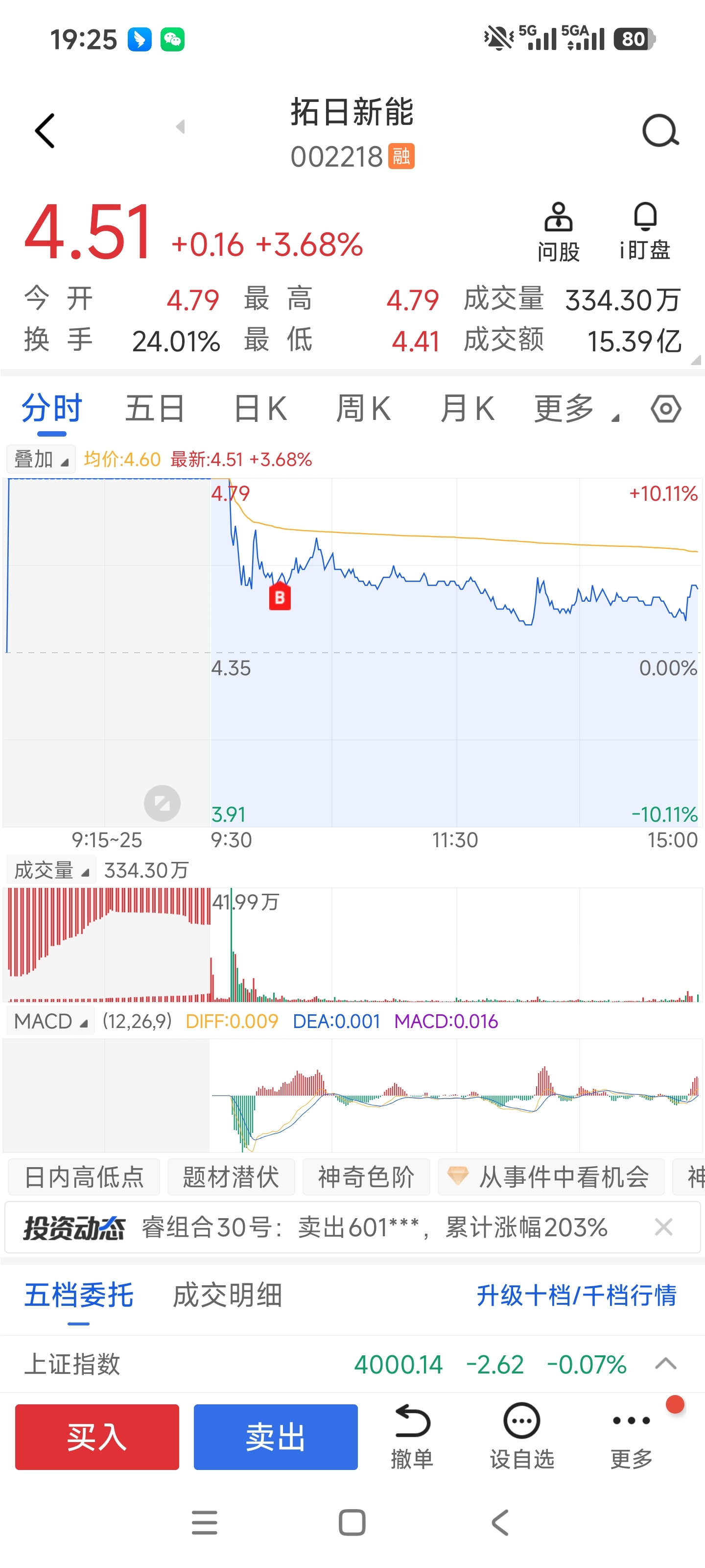 早上金顶直接水下开,看竞价是很强势的,没想到拉高后,既然回头了,那我就全卖了!中国武夷没想到不拉,那我也只能走了!等全部清仓以后,本来不想买票了,但看见拓日新能,很符合我的口味,那搞五成仓。今天就买了这一只!$中国武夷(SZ000797)$ 今天,没想到,绿的,确实难做,怎么样,我都得亏钱,今天的走势,我服。