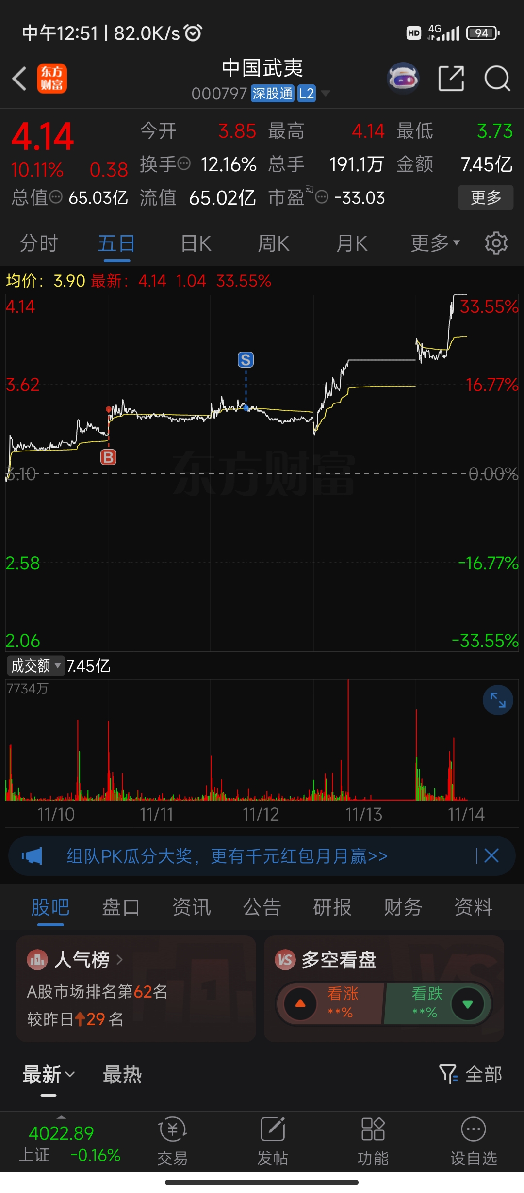 $中国武夷(SZ000797)$ 等等我不行么