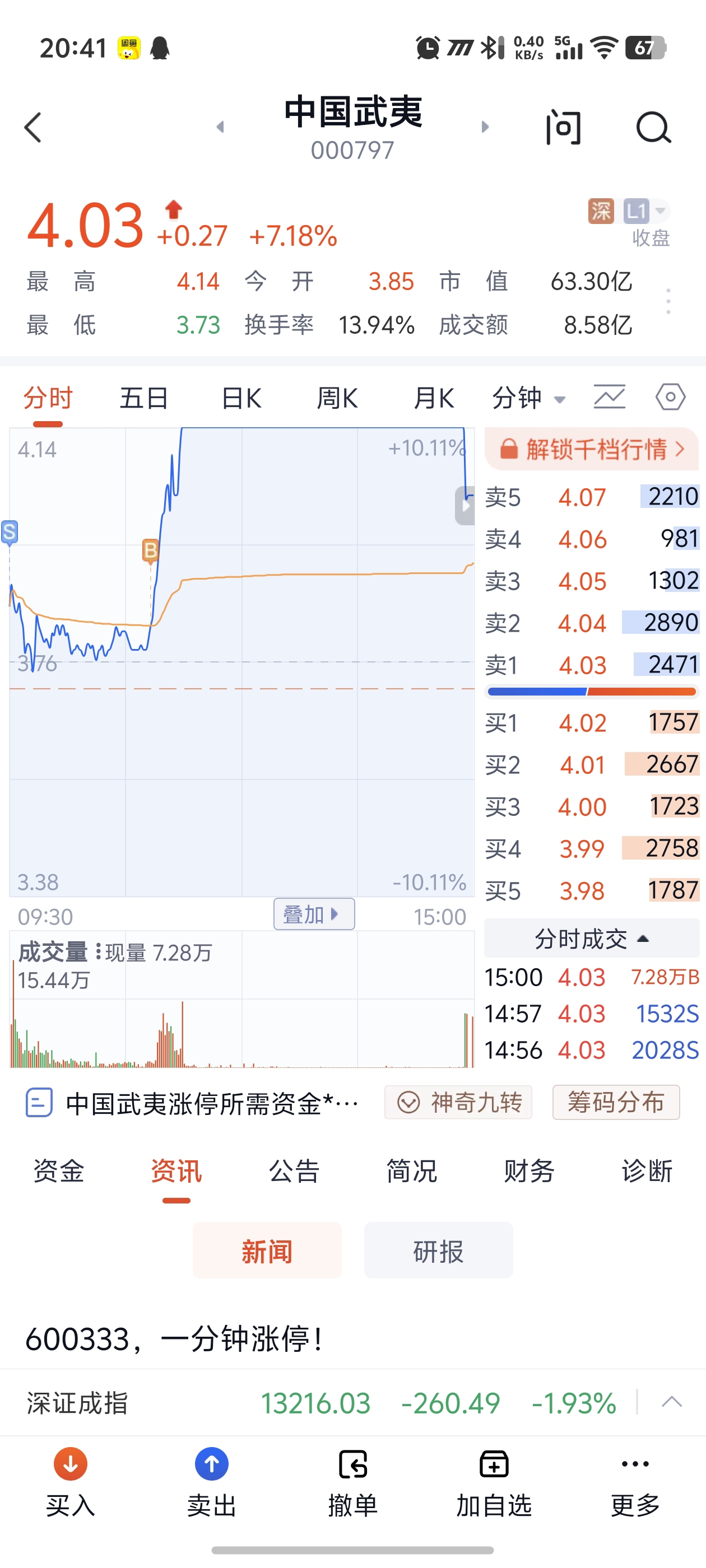 $中国武夷(SZ000797)$ 没事,我8个点利润,周一随便跑,就问主力慌不慌