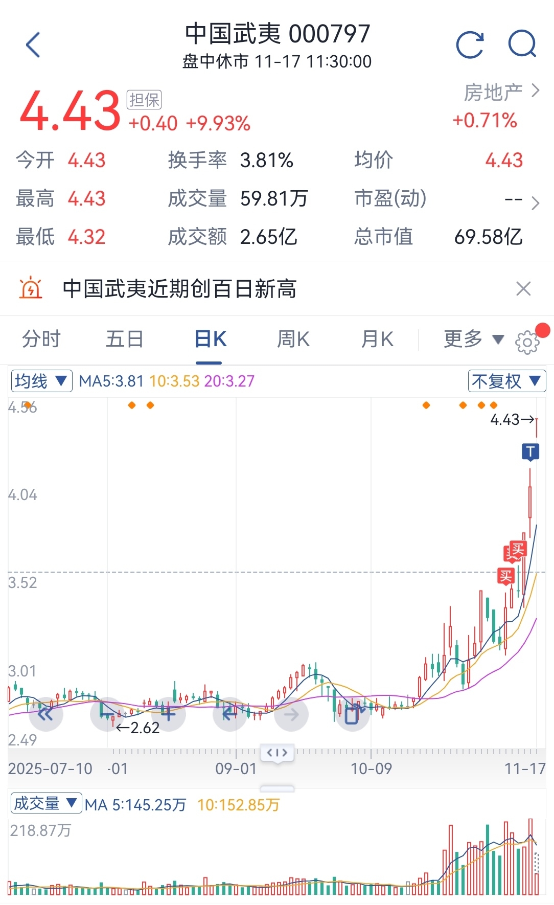$中国武夷(SZ000797)$ 五个交易日收获30个点