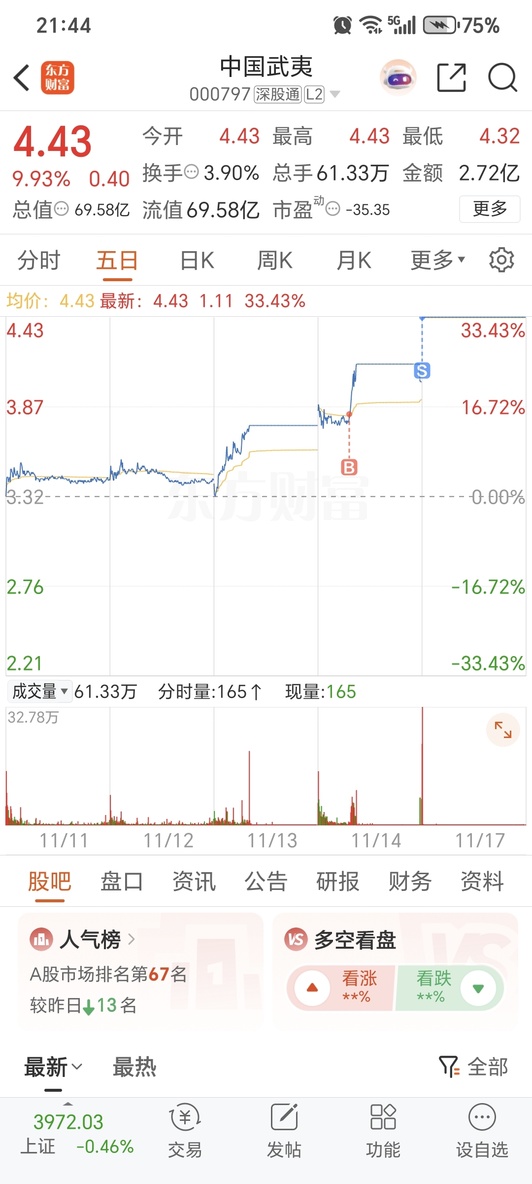 $中国武夷(SZ000797)$ 卖飞了,明天必须追回来