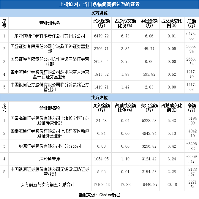 深股通现身龙虎榜,中国武夷跌停(11-19)