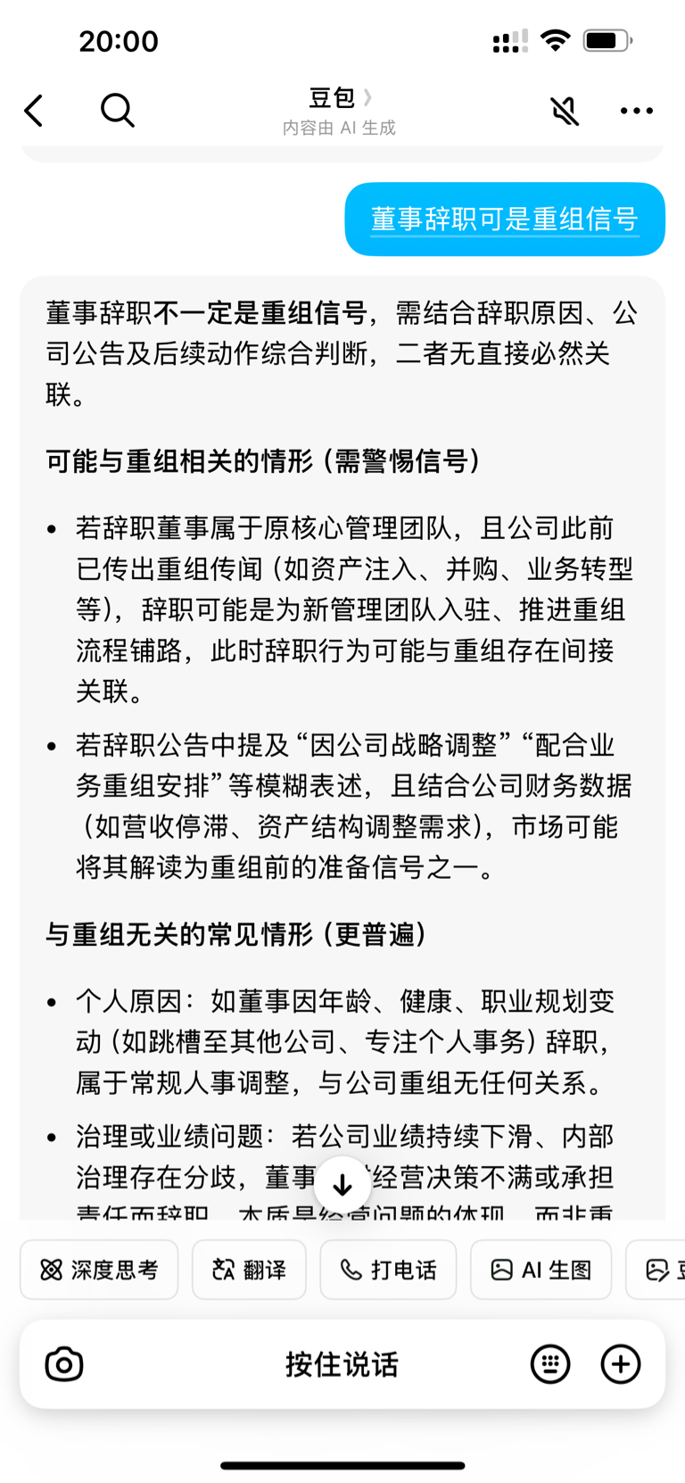 $中国武夷(SZ000797)$ 看看豆包如何解析懂事辞职的