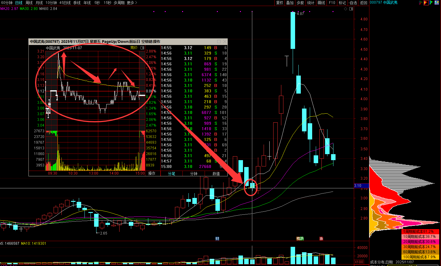 上面两个分时区,前面一张是起飞前的逼空打压走势,下面是今天的,能拿住的人并不多,再跌这些人也不会卖。明天看你表演,看错了也认了