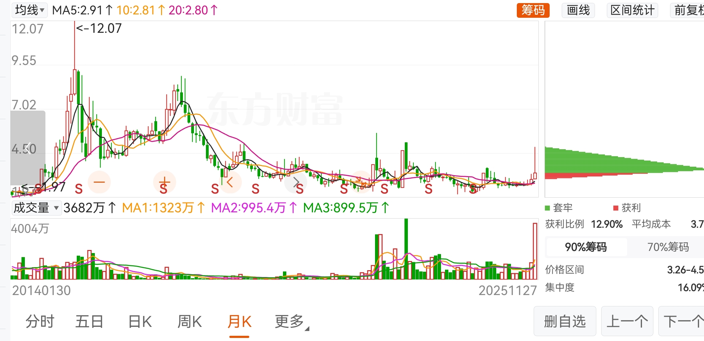这家伙是不是要被ST了???对比2.65启动的那个点,周维度也回撤一半以上了,月