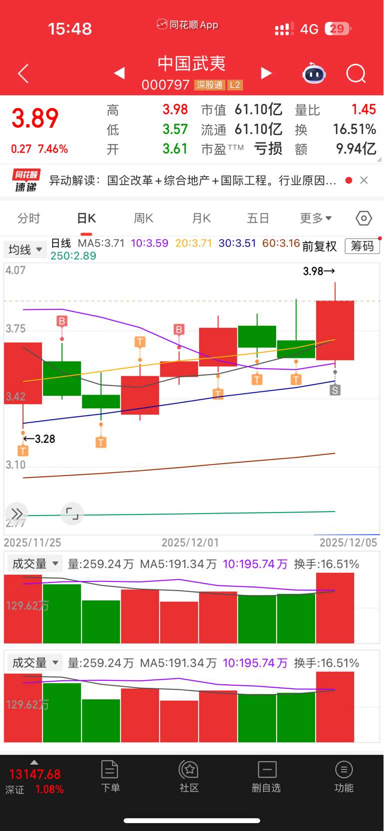 $中国武夷(SZ000797)$ 目前没有仓位,来预测一下,这波要死能上4.3就能破前高,如果不能那就是拉高第二波出货