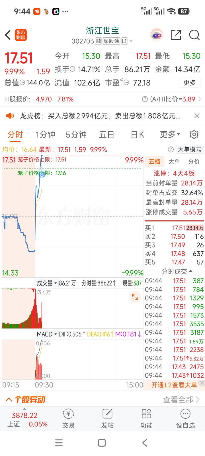 涨停卖了!早上浙江世宝,涨停卖了,不贪,毕竟21个点肉!