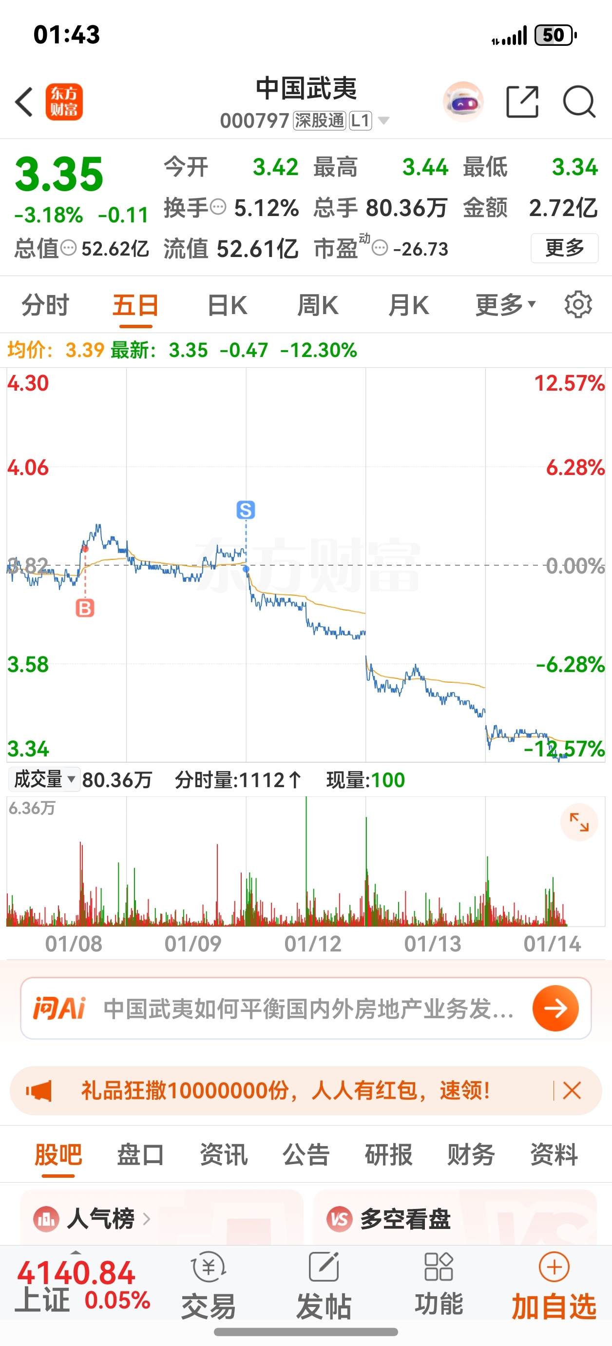 $中国武夷(SZ000797)$ 该割的时候必须果断,这种行业!
