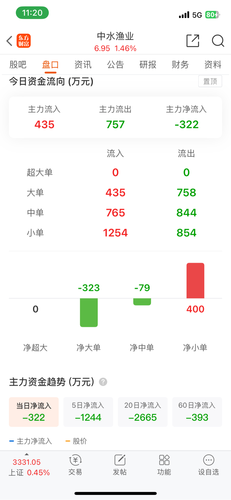 $中水渔业(SZ000798)$ 下来吧,资金天天流出