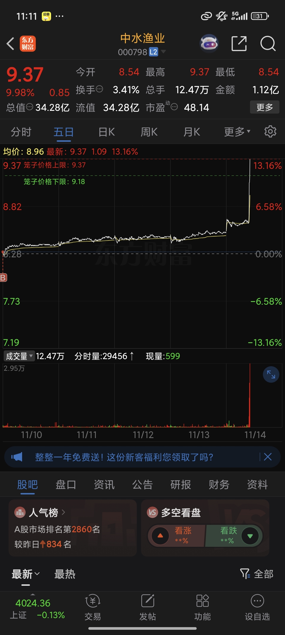 $中水渔业(SZ000798)$ 突然这么多晒单的,那我也晒晒。