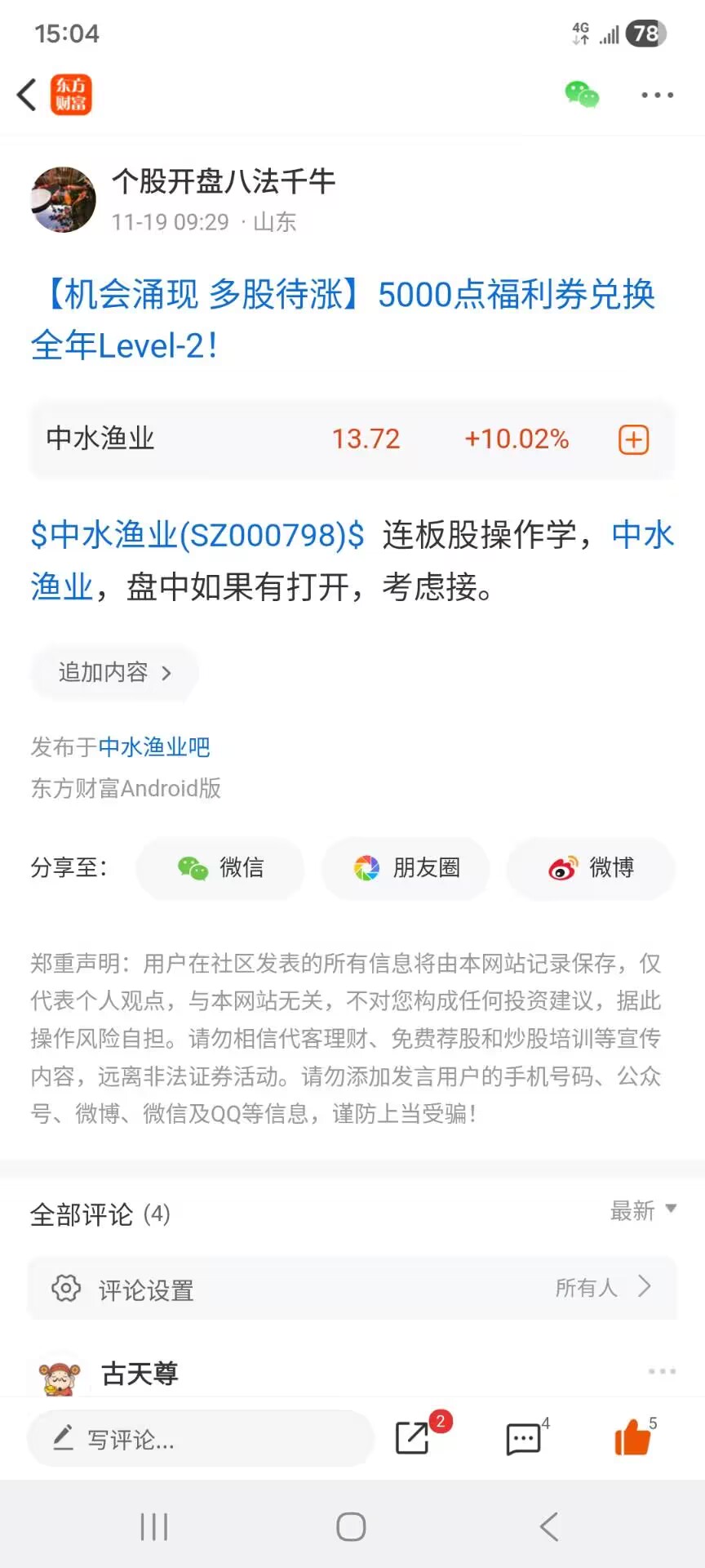 温馨提示: 1.根据《证券法》规定,禁止编造、传播虚假信息或者误导性信息,扰乱证券市场;2.用户在本社区发表的所有资料、言论等仅代表个人观点,与本网站立场无关,不对您构成任何投资建议。用户应基于自己的独立判断,自行决定证券投资并承担相应风险。《东方财富社区管理规定》