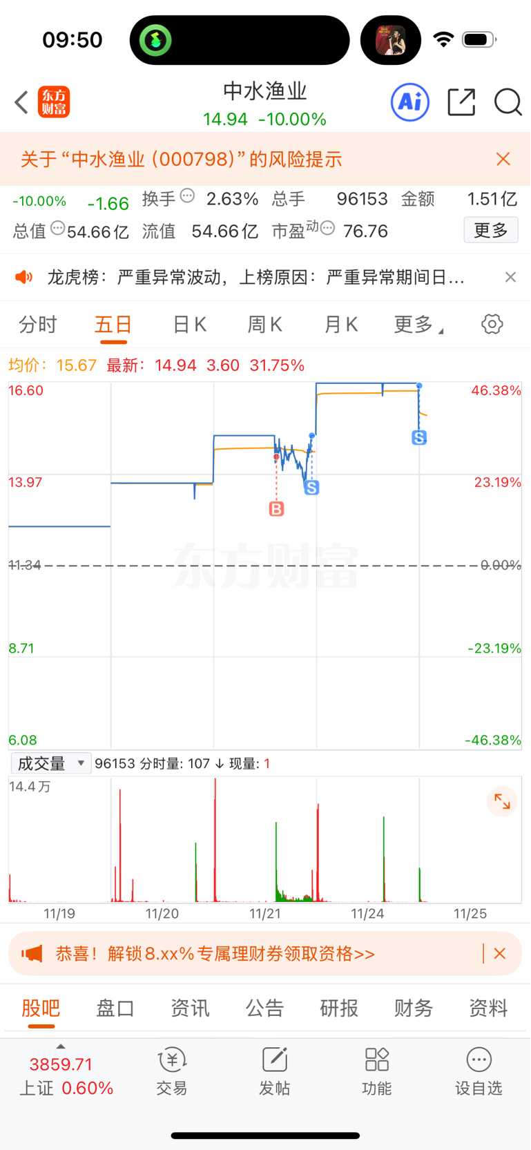$中水渔业(SZ000798)$ 集合竞价把底仓挂了跌停出就去吃早餐了,回来一看懵了,一点承接都没有啊!以后做高标危险了,也算是卖在最高了