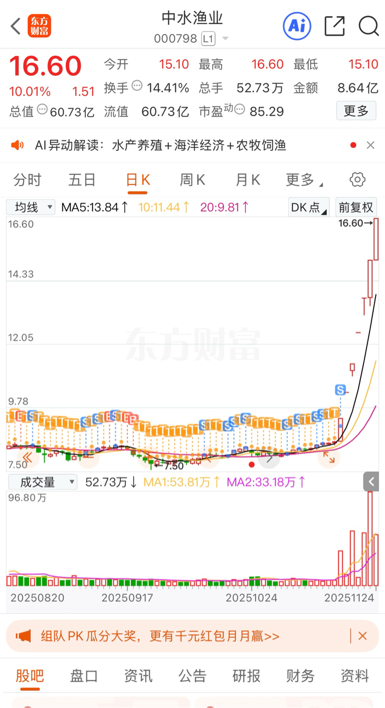 $中水渔业(SZ000798)$ 我有筹码啊,但是我第一板就走了 哭一个礼拜了