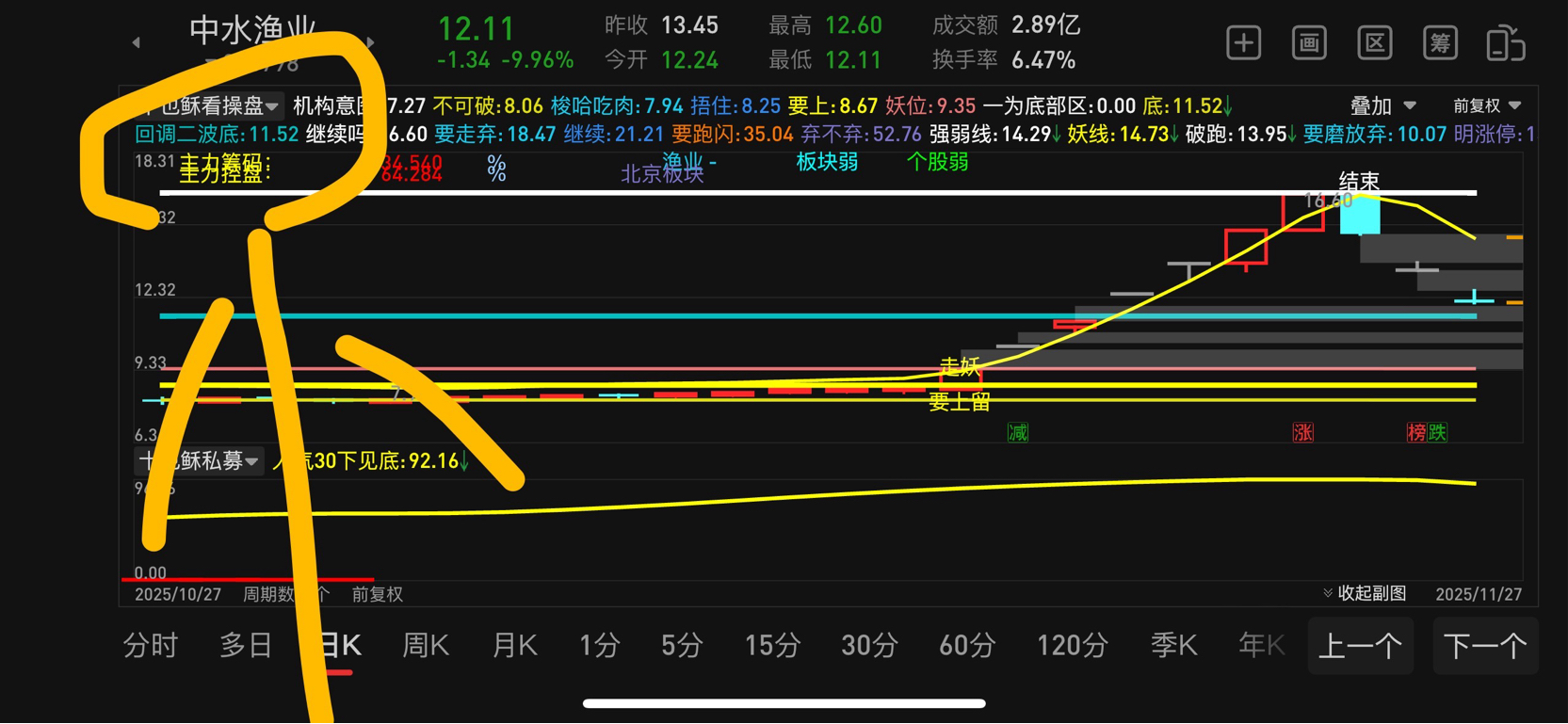 中水二波底11.52,如果够强,今日必地天,个人记录