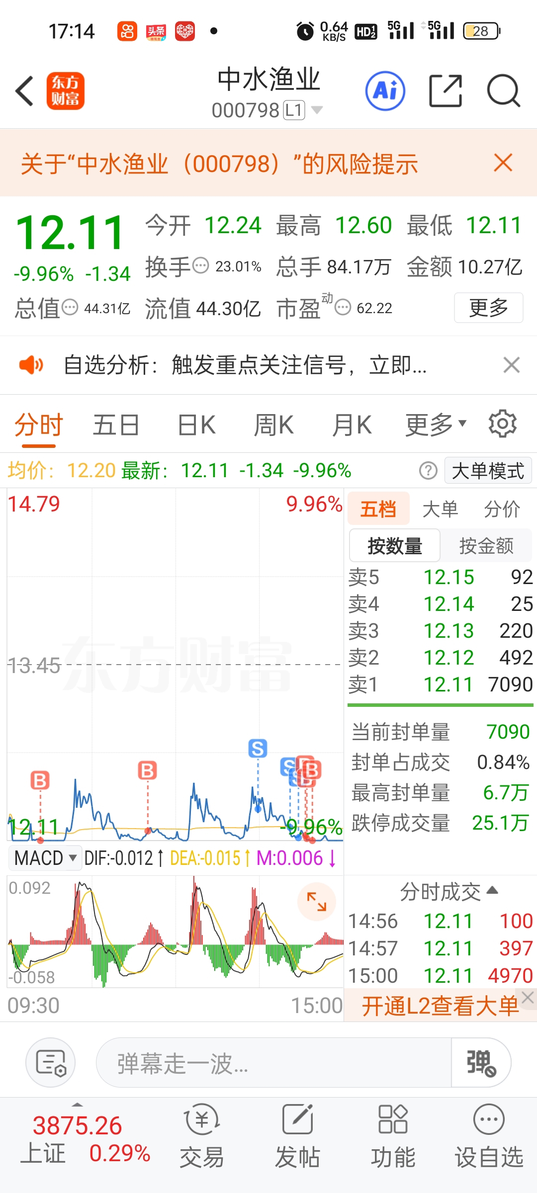 $中水渔业(SZ000798)$ 做T慢慢做出来