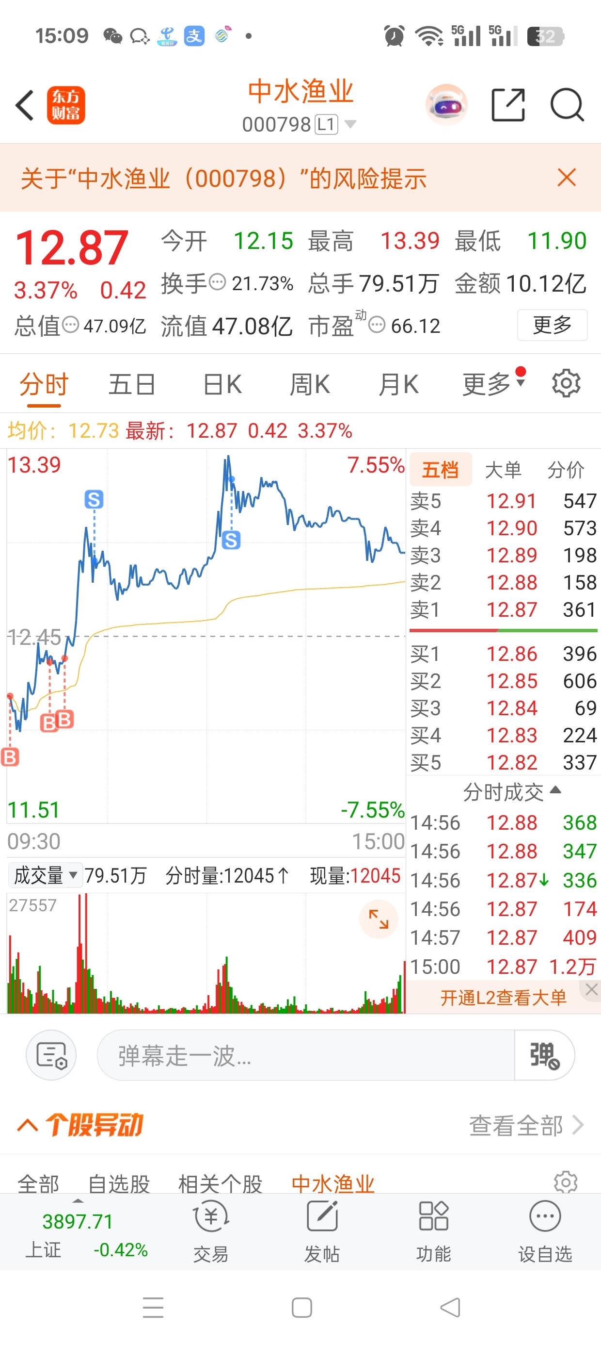 $中水渔业(SZ000798)$ 今天短线情绪这么好,没涨停有点可惜,看明天吧