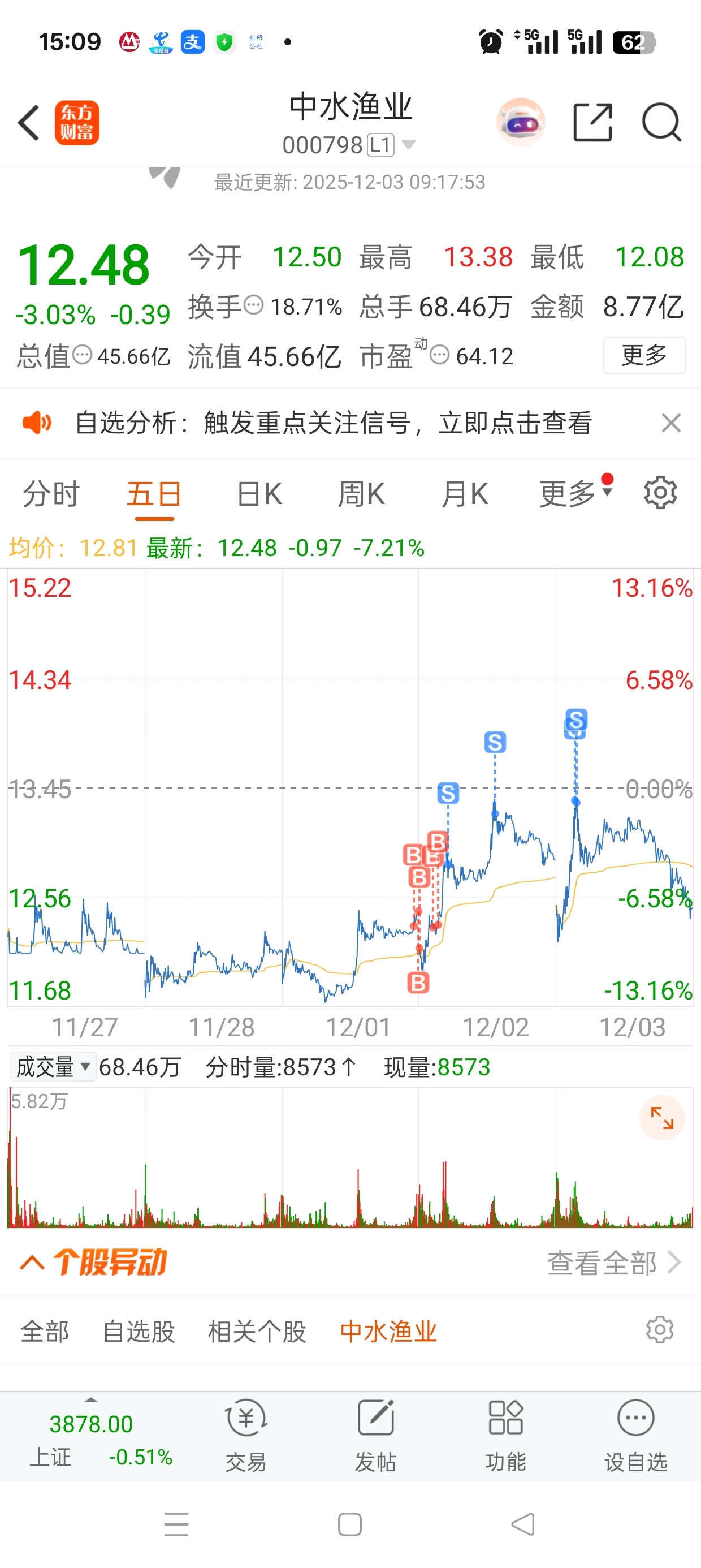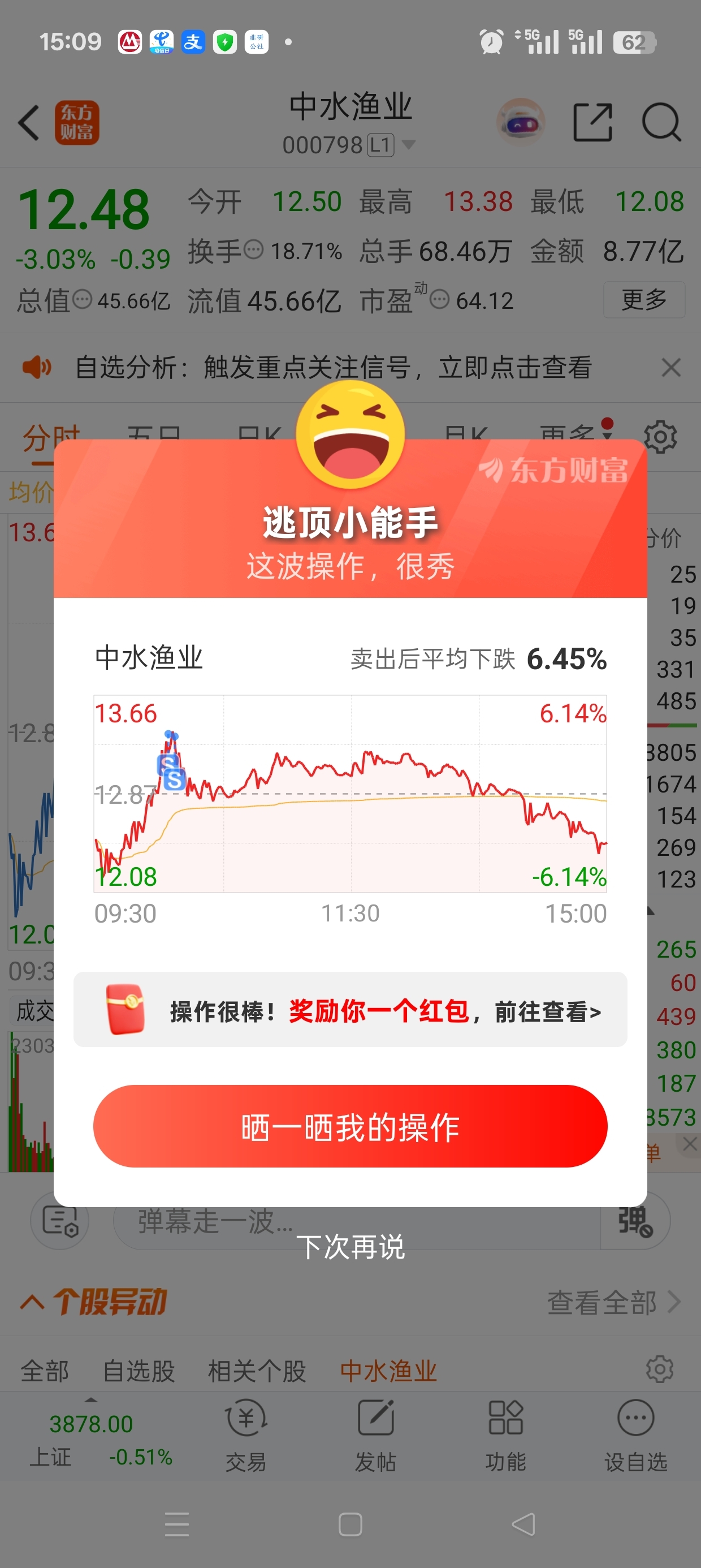$中水渔业(SZ000798)$ 目前做的多的模式就是这种小二波,做了好几支,多数都赚钱出来,中水渔业是收益最多的一支,给了我很大的信心,昨天早上满仓低吸买入,很久没有满仓买入一支股了,今天高点全身而退。以后要专注做确定性高的,上涨预期高的,辨识度高的