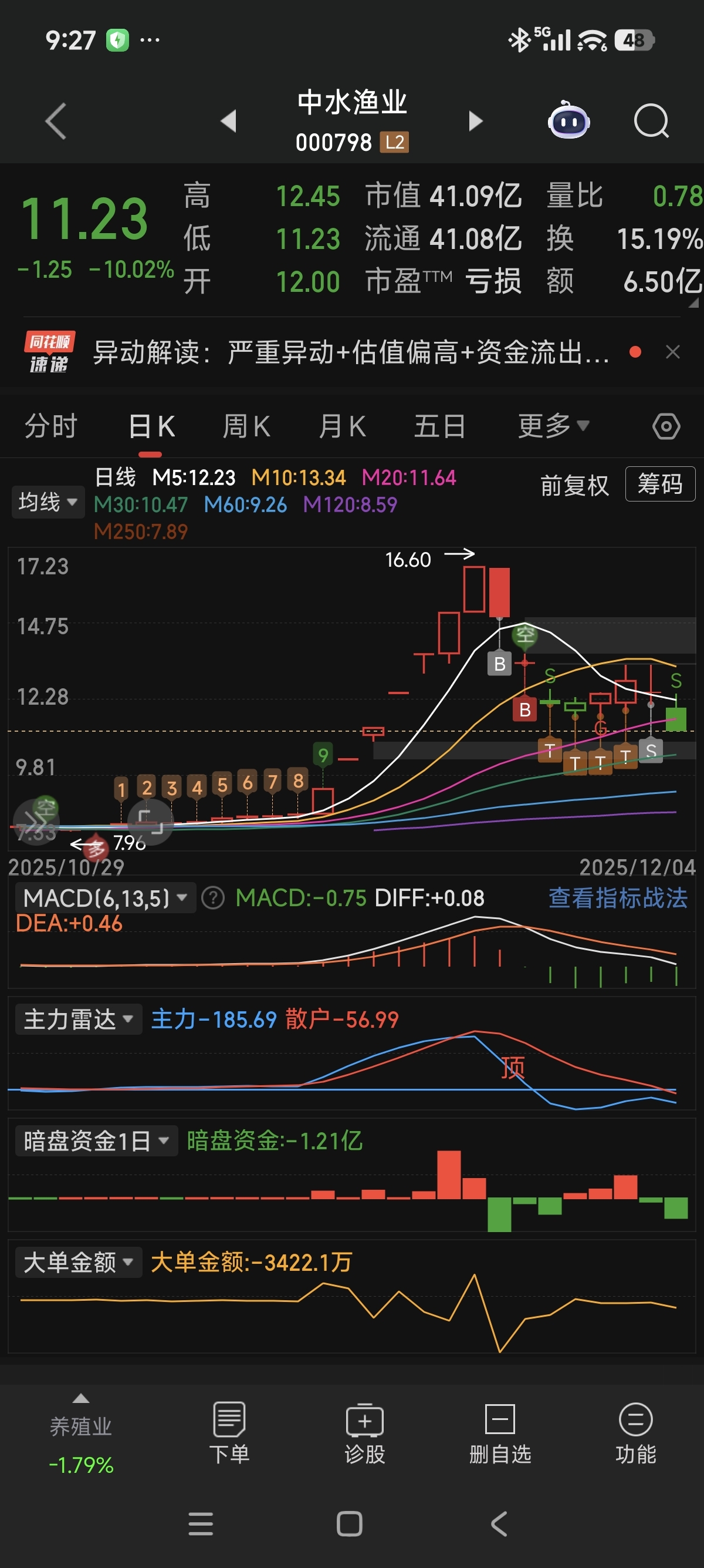 $中水渔业(SZ000798)$ 这么猛,又跌停了,幸亏昨天清仓了,从大亏到小赚!
