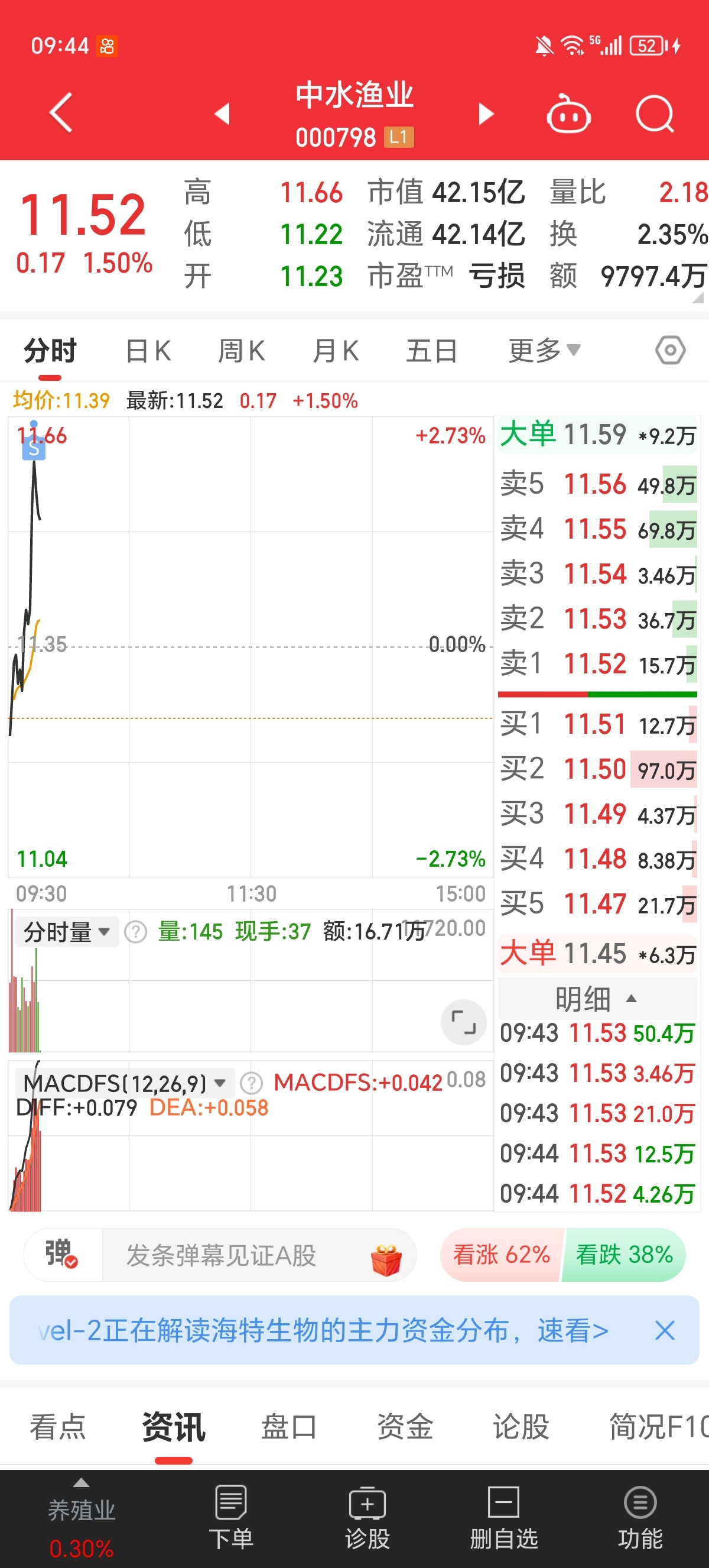 $中水渔业(SZ000798)$ 谢谢主力 最高点走的