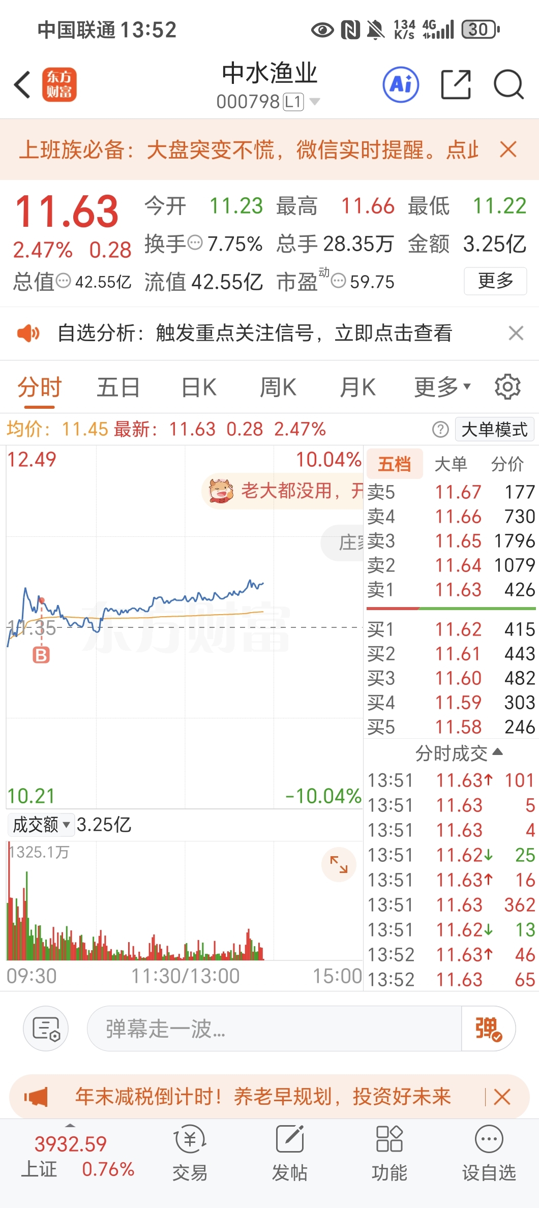 $中水渔业(SZ000798)$ 尾盘加仓 趋势来了