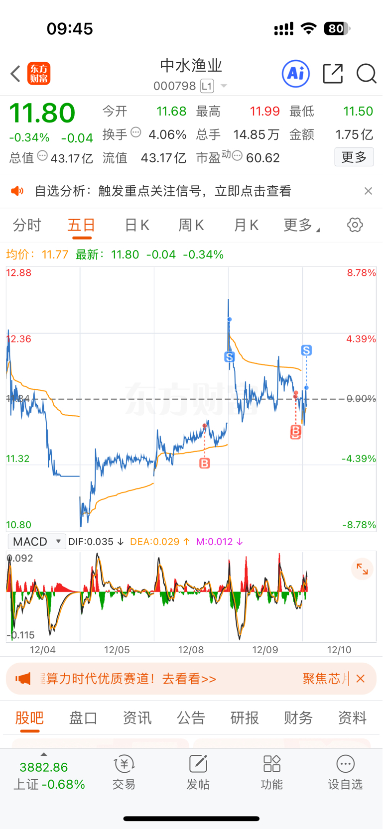 $中水渔业(SZ000798)$ 跑了留下的发财
