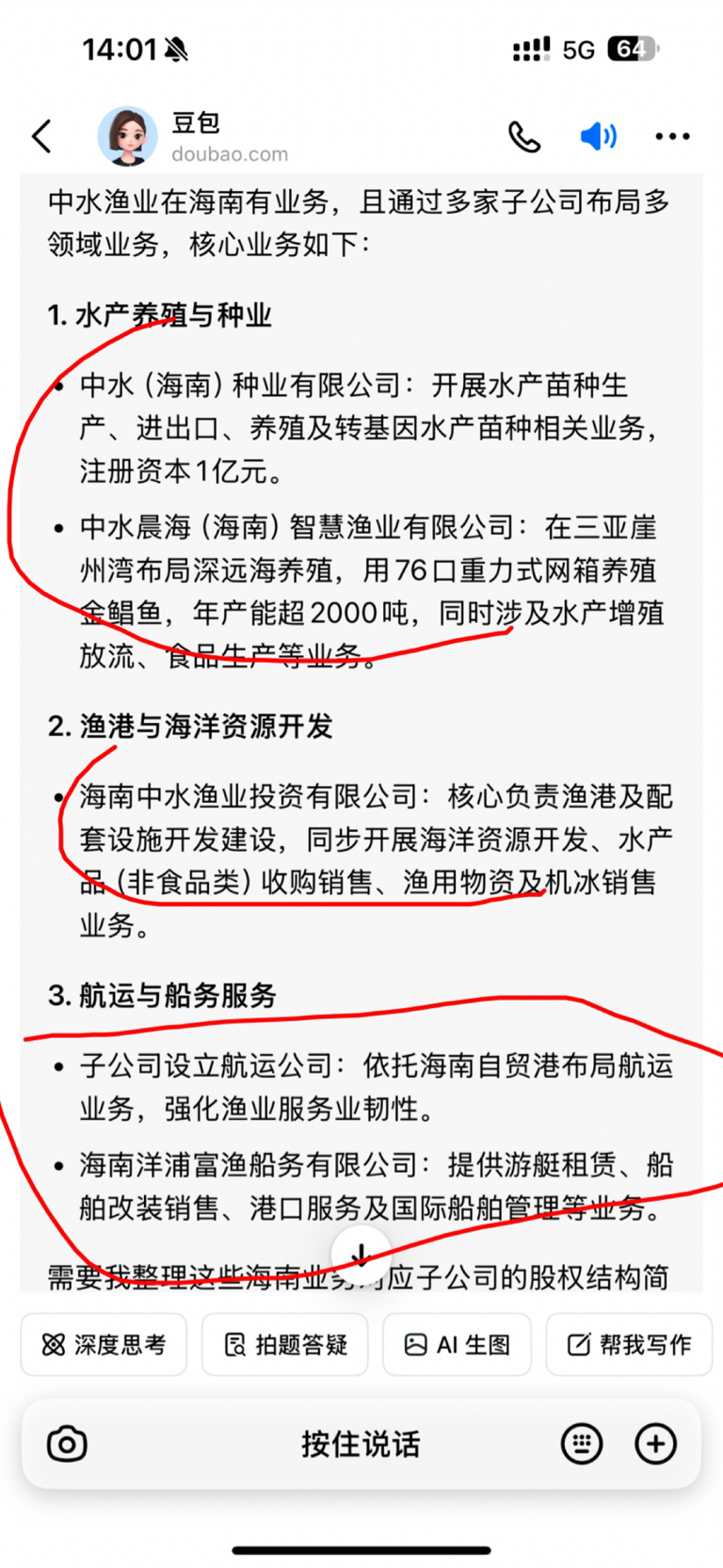 $中水渔业(SZ000798)$ 未被发掘的正宗海南概念,渔业,游艇都是牛逼业务