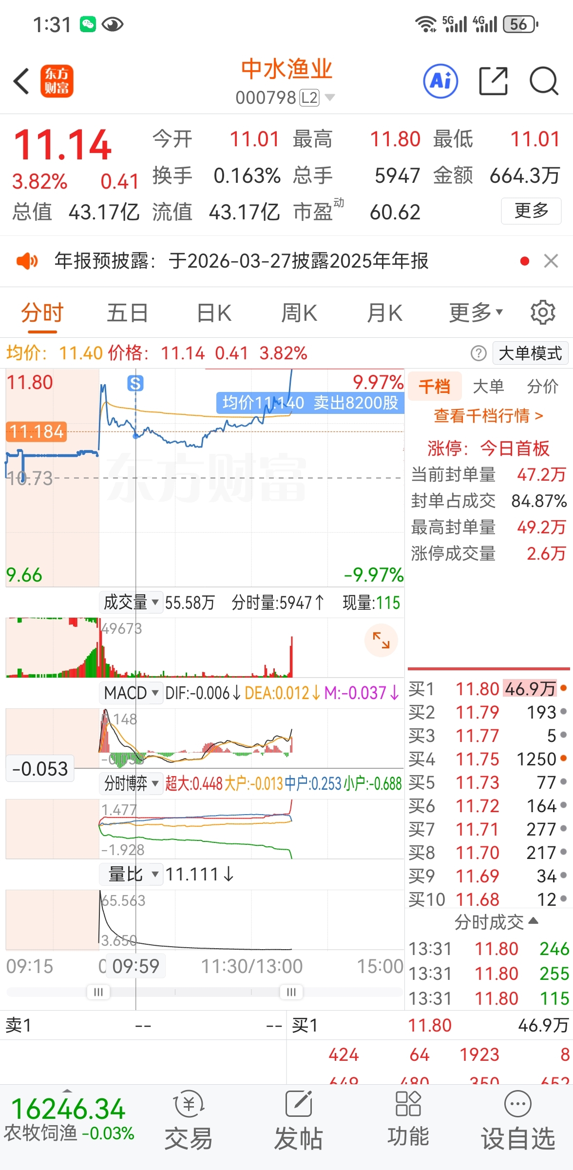 $中水渔业(SZ000798)$ 你是想气死我,亏了20多个点