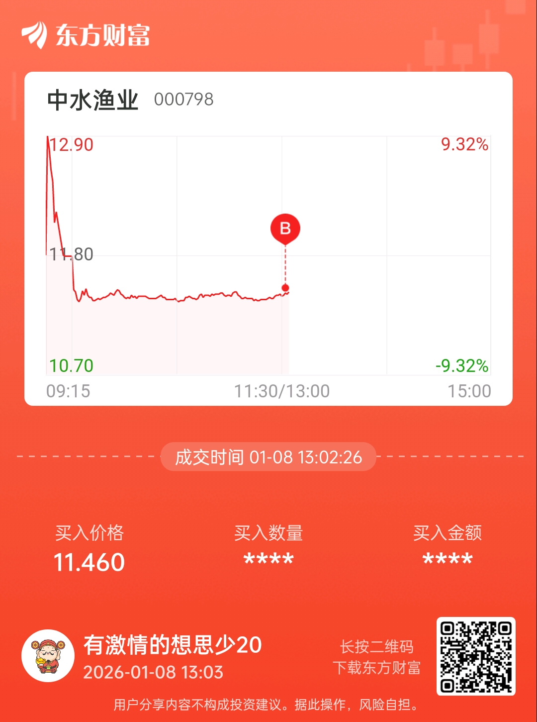 $中水渔业(SZ000798)$ 买了点,过年前菜价涨了