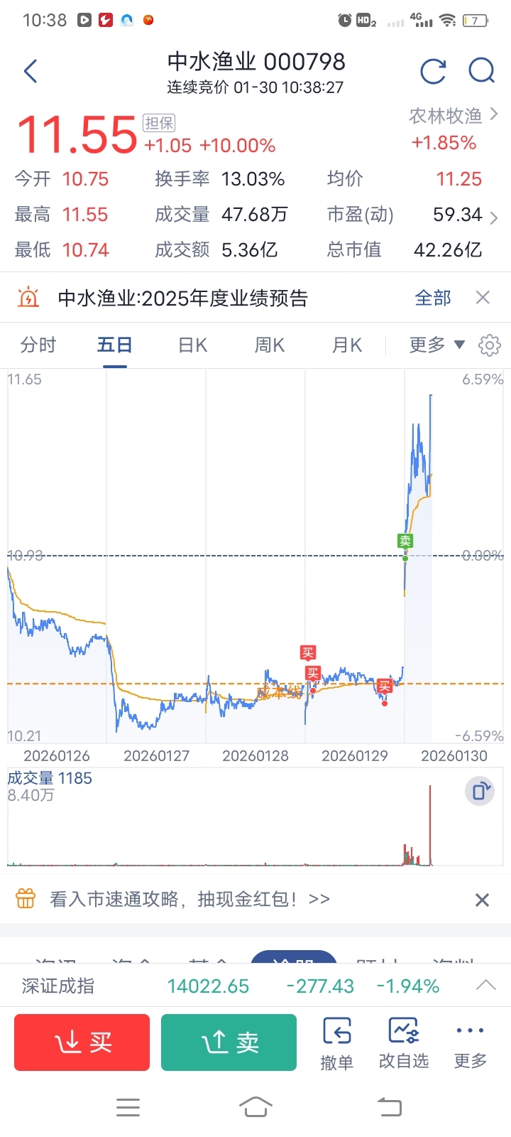 $中水渔业(SZ000798)$ 昨天买进,一夜游,886