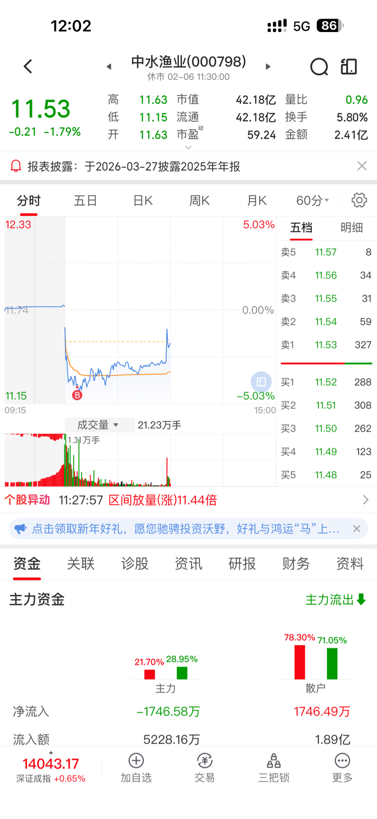 $中水渔业(SZ000798)$ 啦啦啦啦啦啦