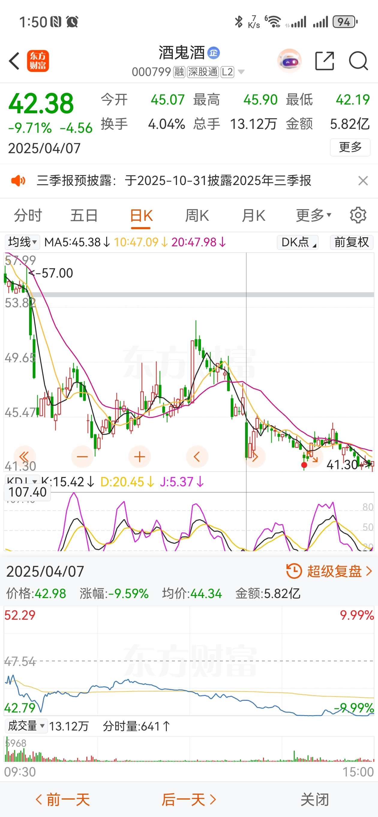 $酒鬼酒(SZ000799)$ 4月7日