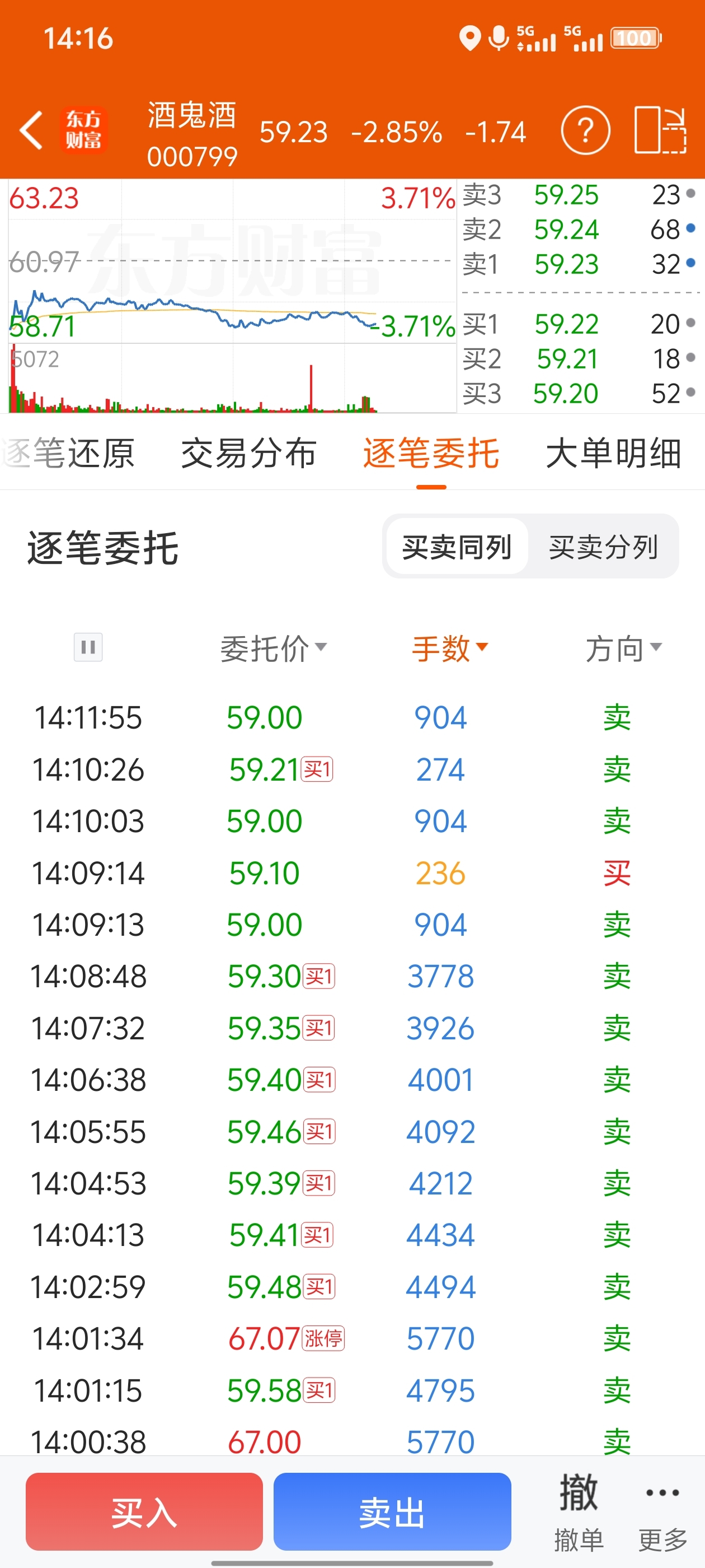 $酒鬼酒(SZ000799)$ 这些大单砸盘苟等钱买给家里人吃