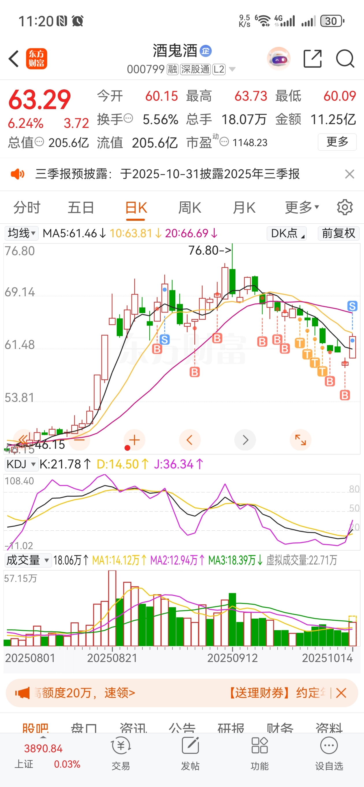 $酒鬼酒(SZ000799)$ 留底仓,感谢主力