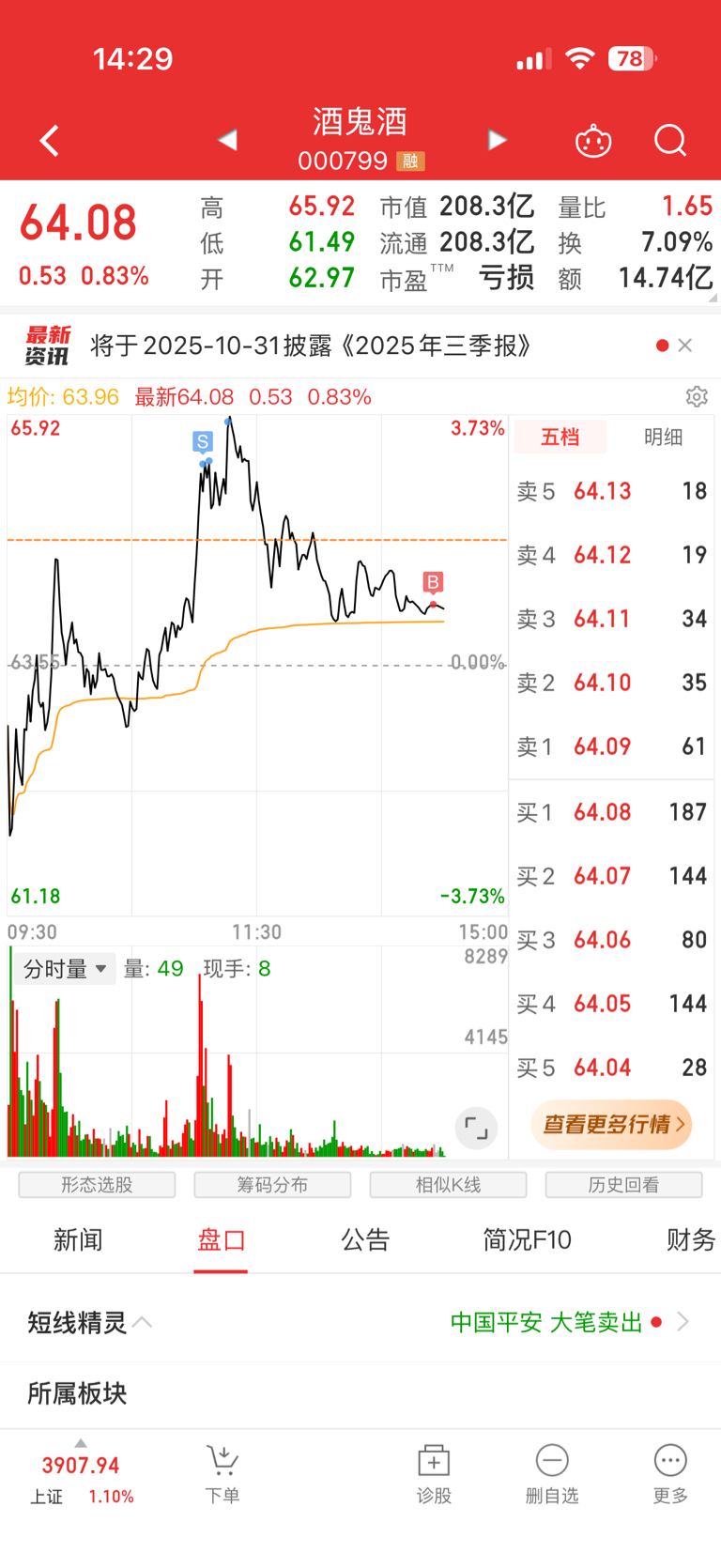 $酒鬼酒(SZ000799)$ 还是舍不得你啊