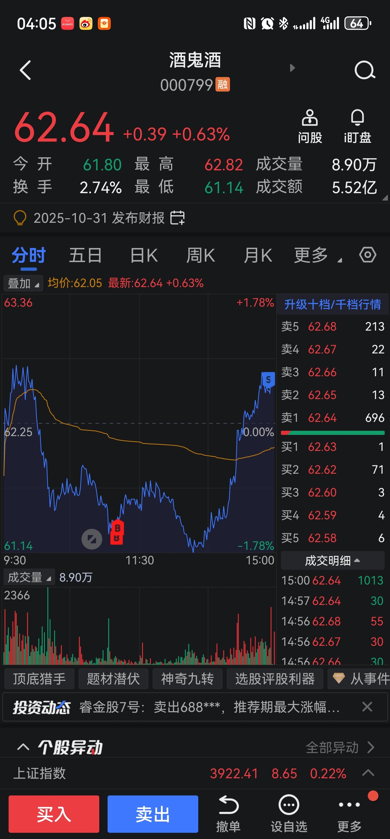 $酒鬼酒(SZ000799)$ 做个T就跑