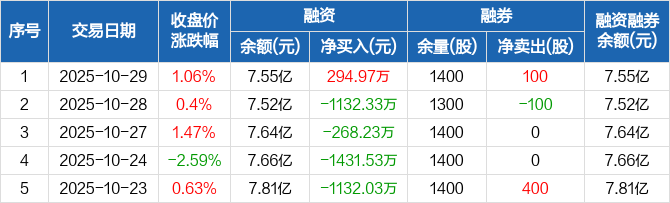 酒鬼酒:融资净买入294.97万元,融资余额7.55亿元(10-29)