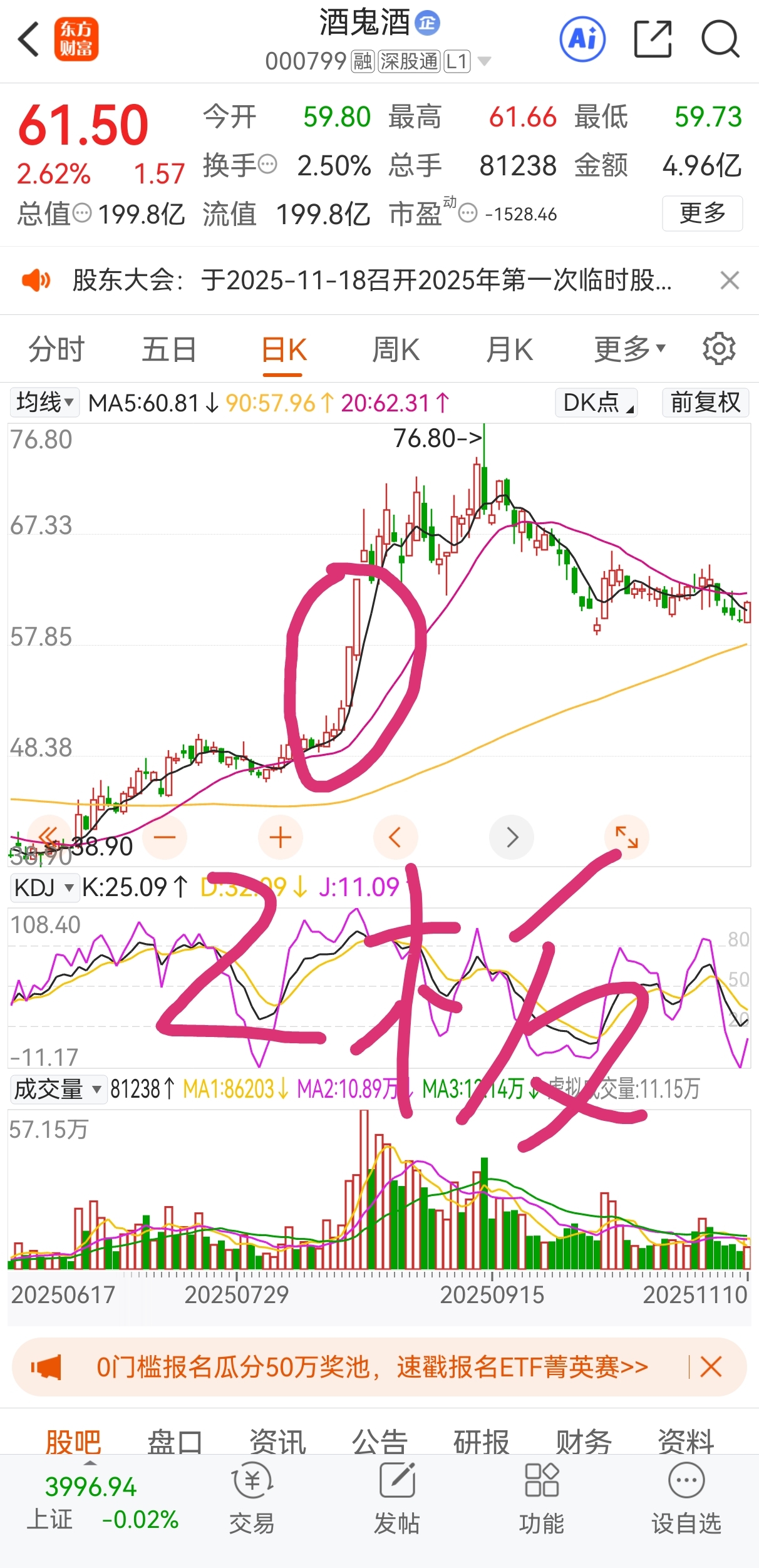 目前纯粹的白酒概念,二连板只有酒鬼酒涨停基因这个是市场共识度最高的,如果是三连板