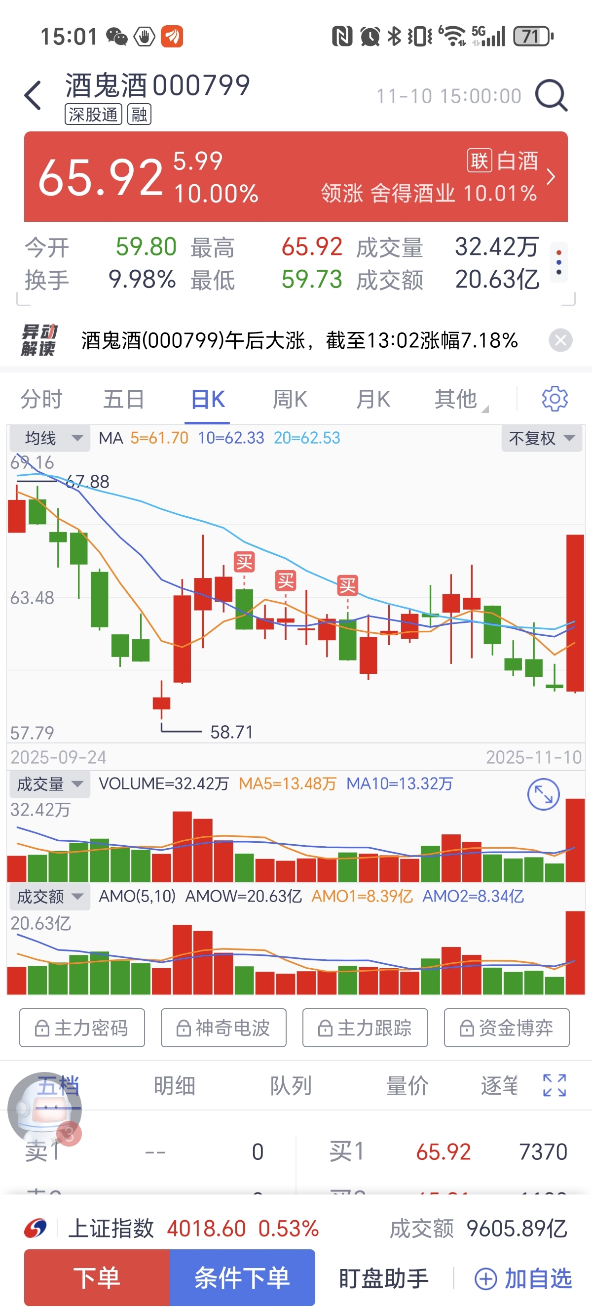 $酒鬼酒(SZ000799)$ 今天盈利两个点,终于红了。