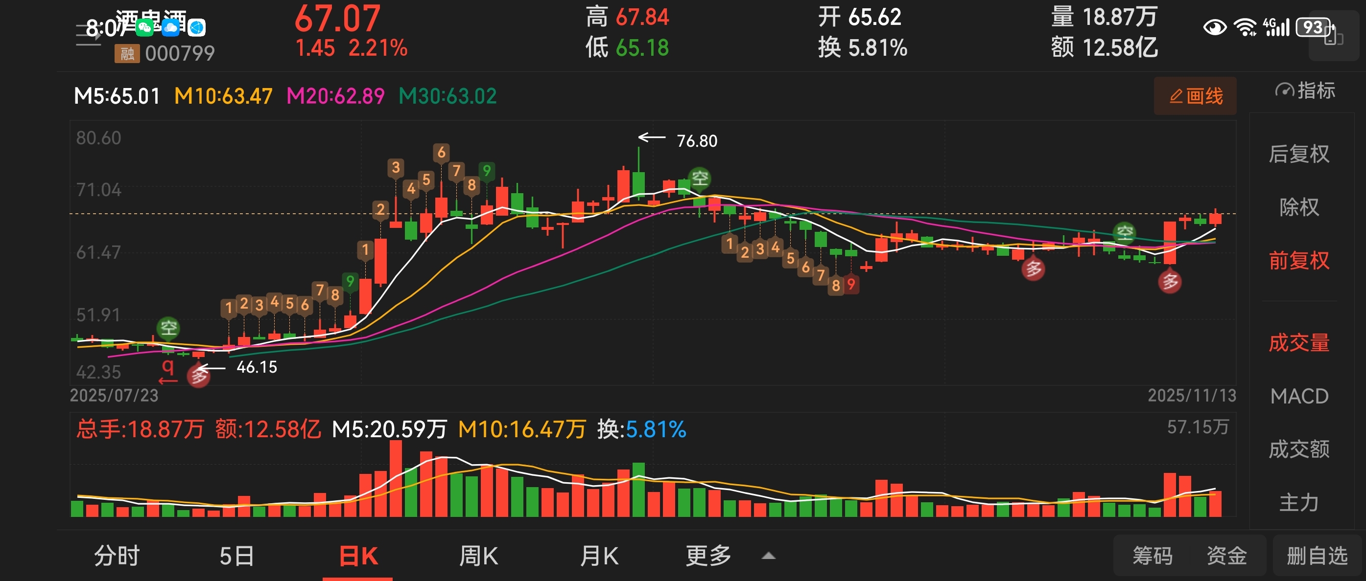 11.13分享,先喝酒后吃药短期先看前高分享经验不构成投资建议