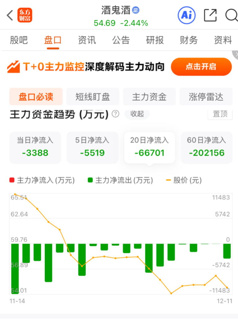 $酒鬼酒(SZ000799)$ 连续20天流入为绿