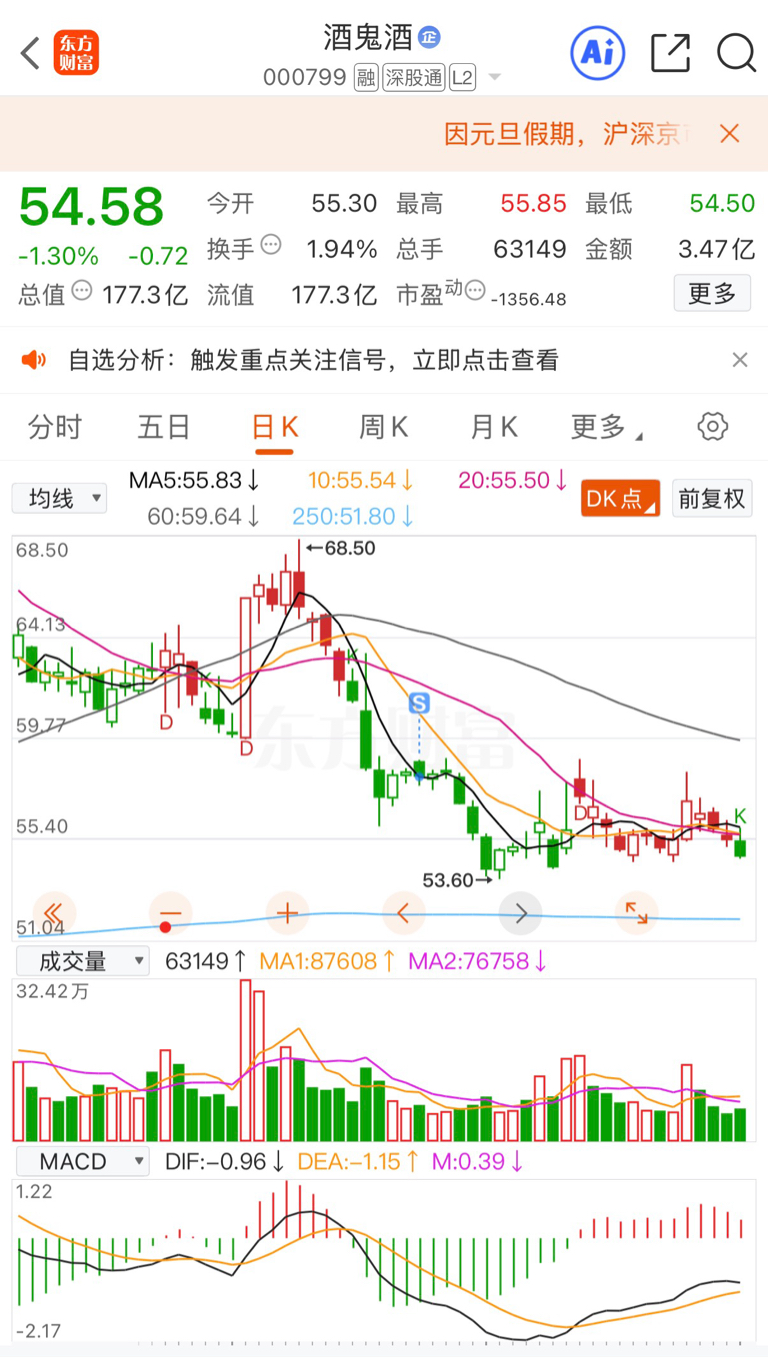 $酒鬼酒(SZ000799)$ 当时清掉后换了江西铜业,心情舒适,喜迎元旦。 节后看看能不能再到30多块,25年开年连着大跌了好多天。
