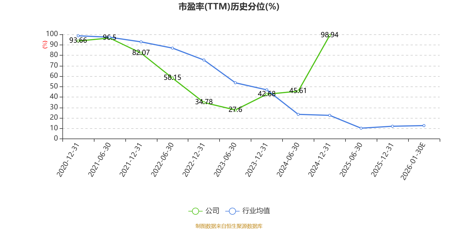 以本次披露业绩预告均值计算,公司近年市盈率(TTM)图如下所示: