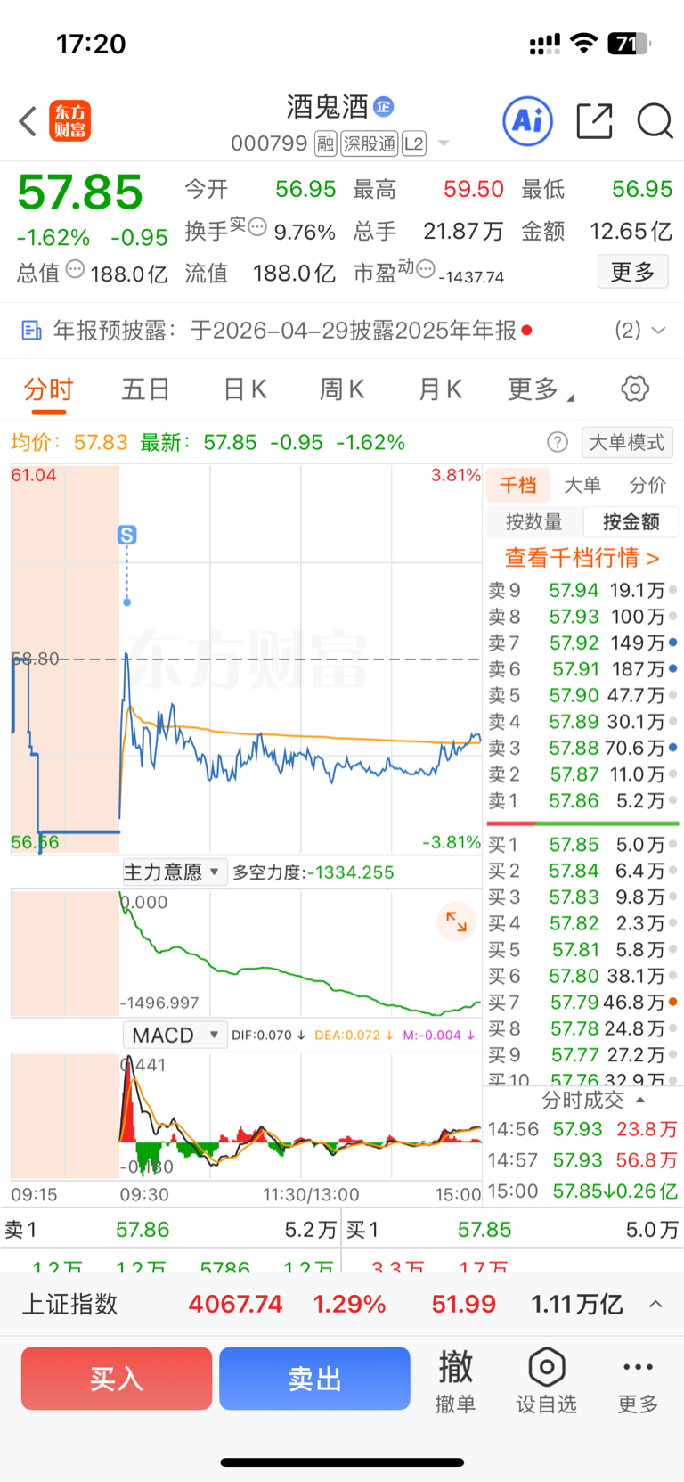 $酒鬼酒(SZ000799)$ 至今没看懂怎么成交的!