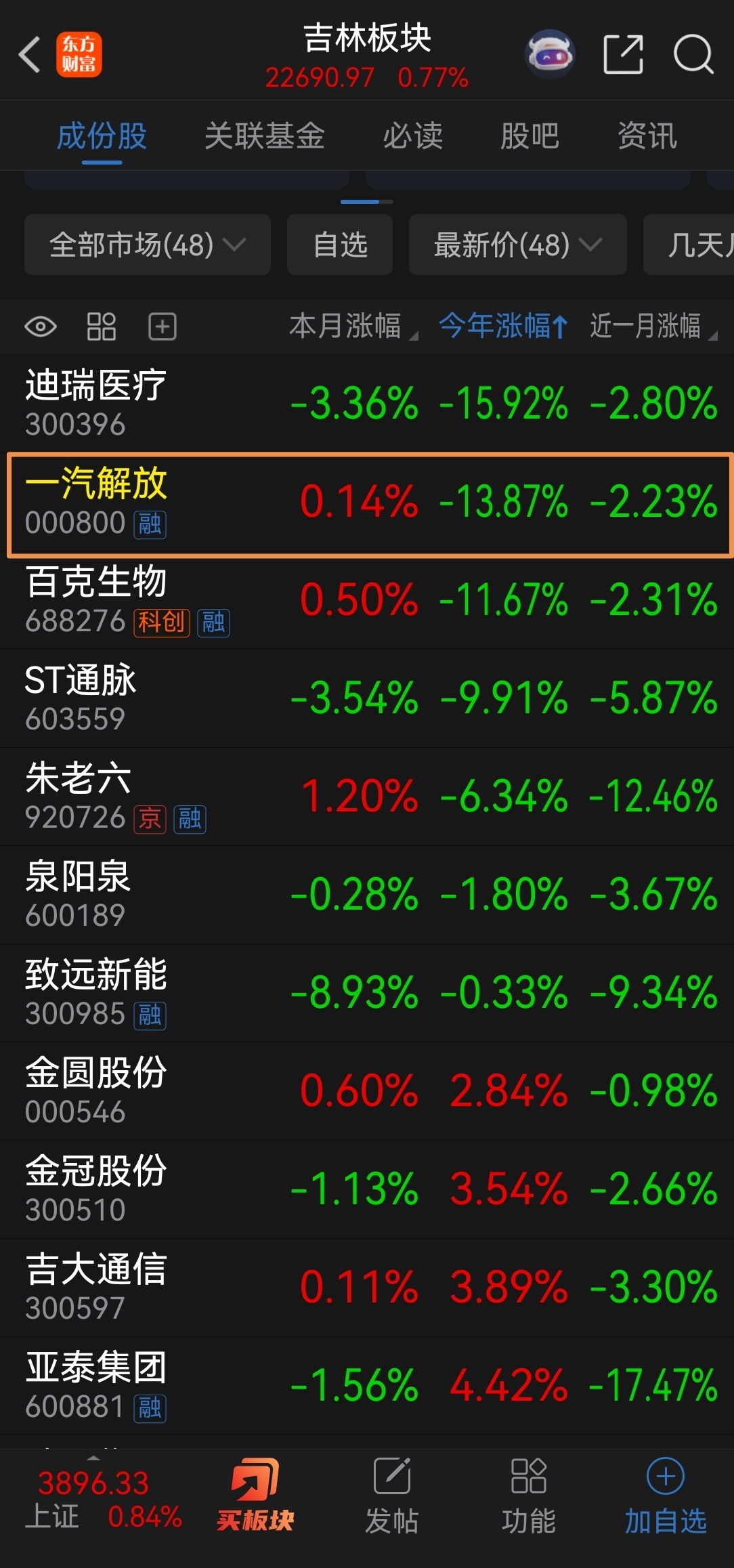 共和国长子《中国一汽》的私生子【一汽解放】真的给领导长脸,在吉林上市公司中倒数第