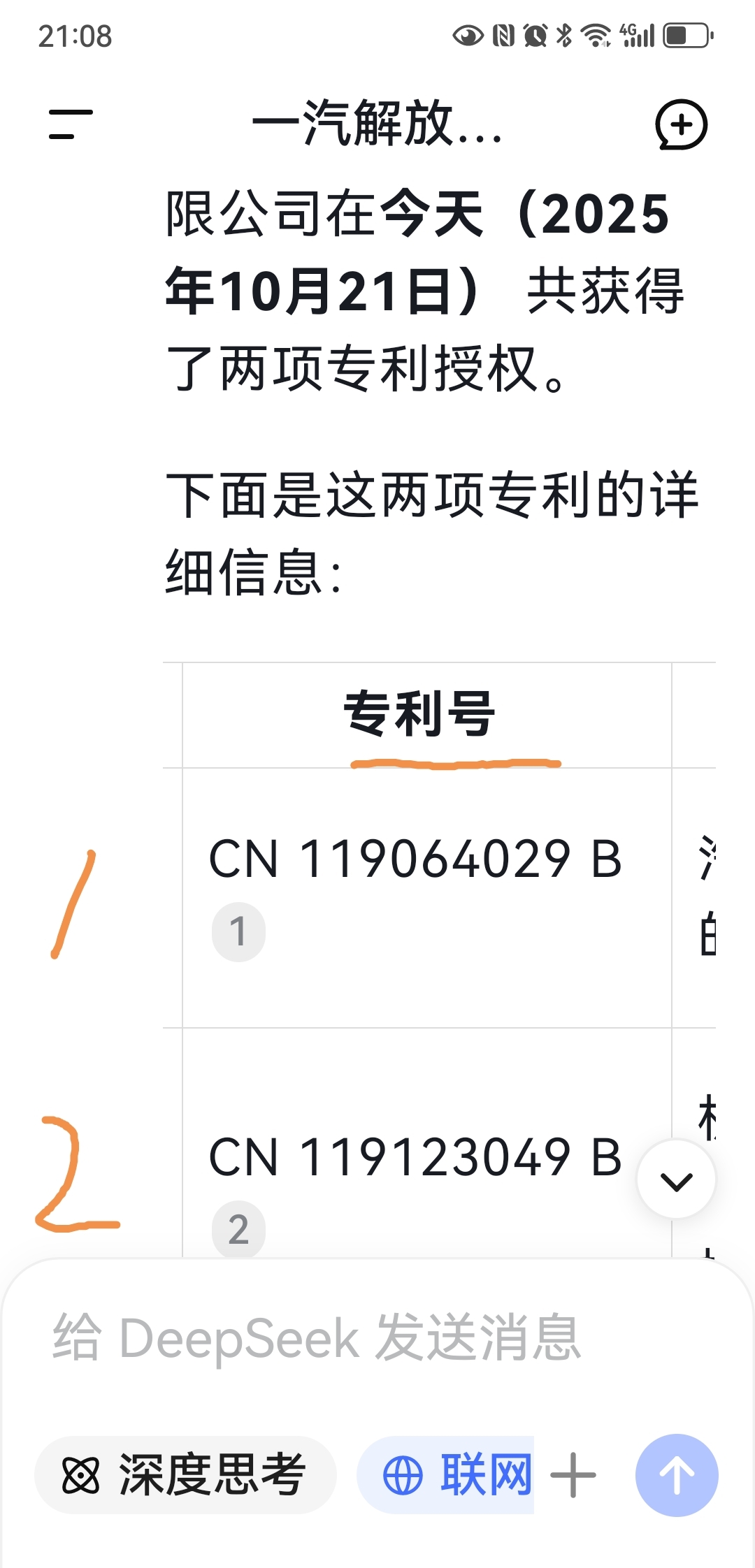 今天,一汽解放获得了两项专利的授权——也就是已经实实在在被批准拥有了这俩个专利。,该俩个专利的名称与用途见如下列表。,这俩个专利的具体实用价值与对一汽解放汽车的意义,大家可再“深查”