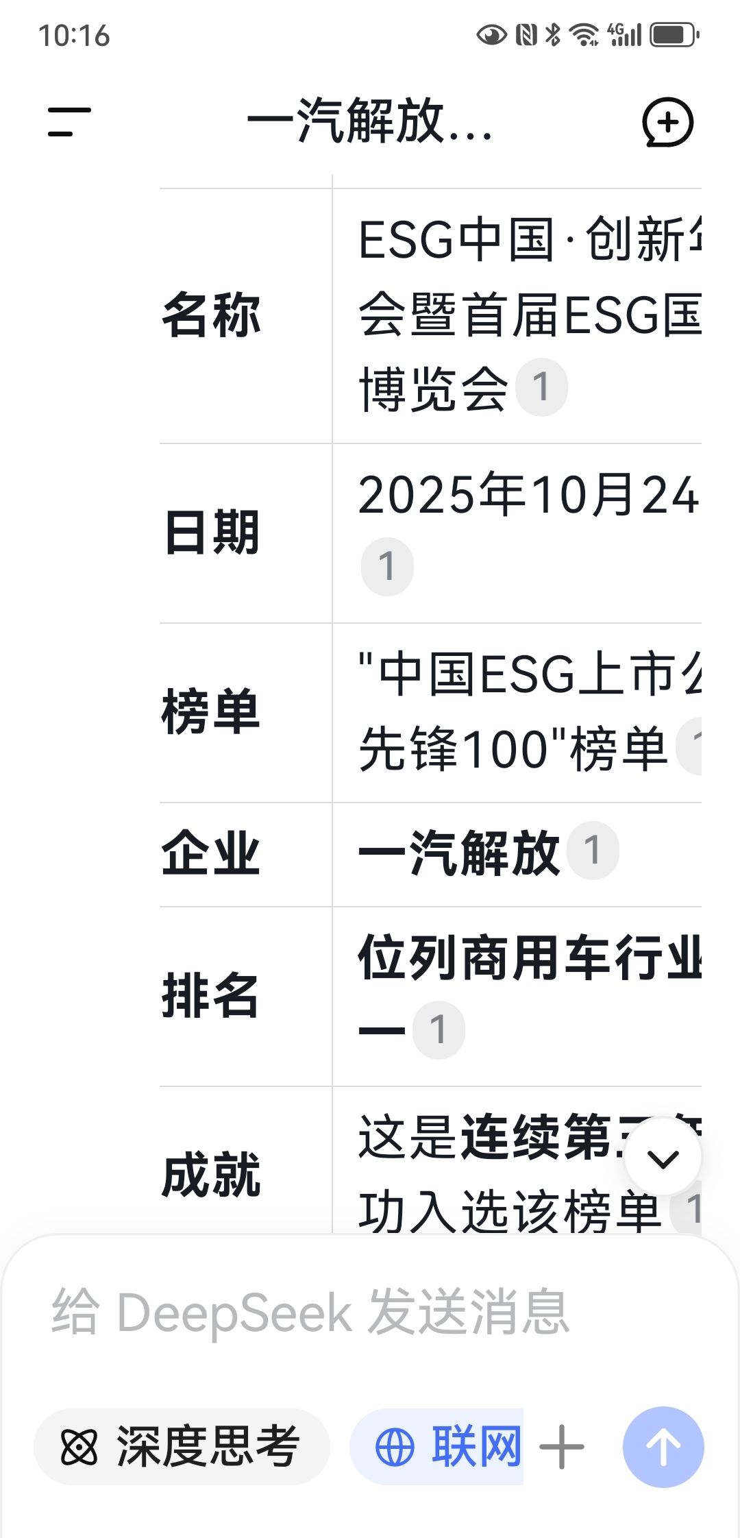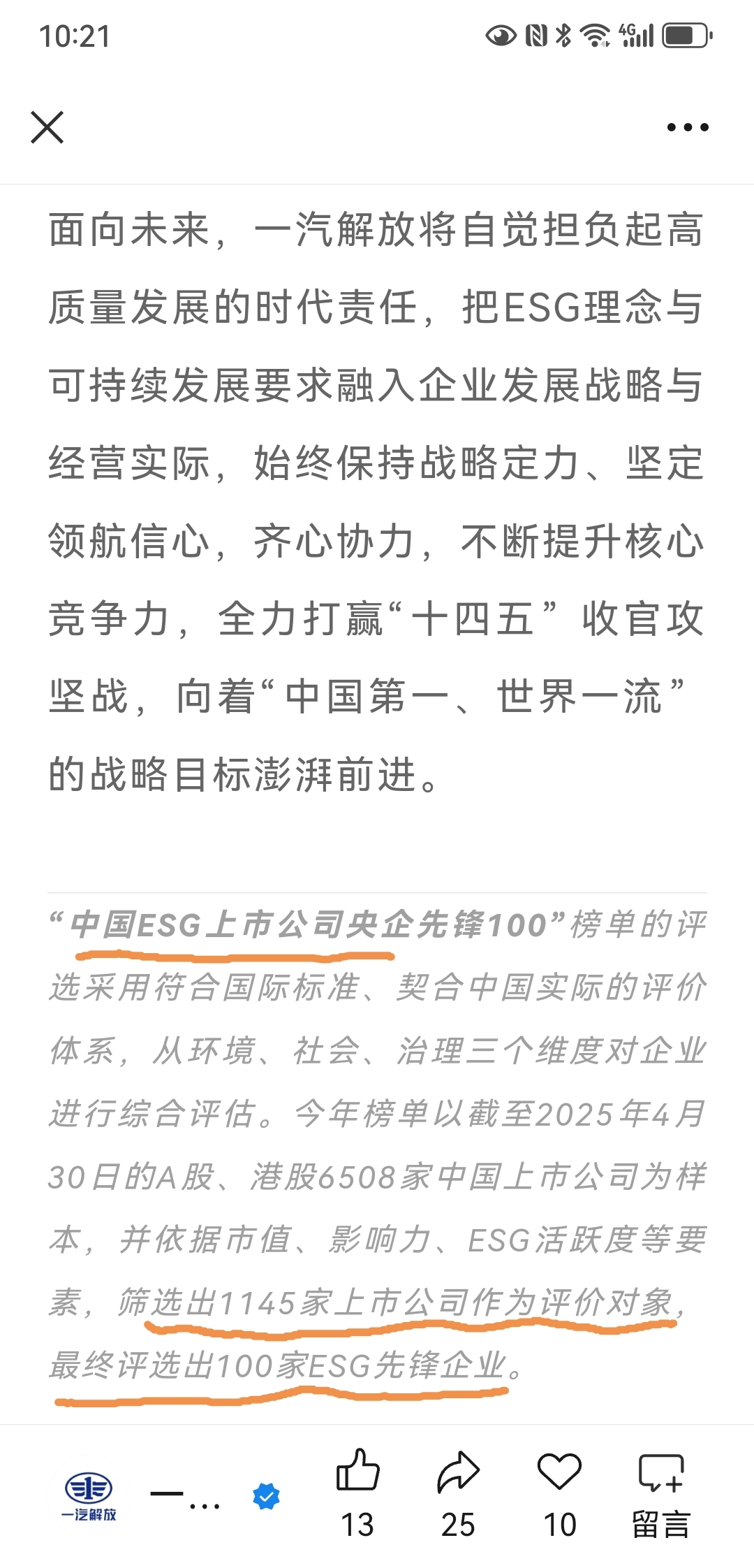 根据最新资讯,一汽解放于昨天10月24号再次入榜国家级ESG。该奖项有国家有关权威部门举办并认定,每年在众多企业中评选出前100名为入榜!(有关国家级ESJ的含义价值与意义不清楚的朋友可百度查看)