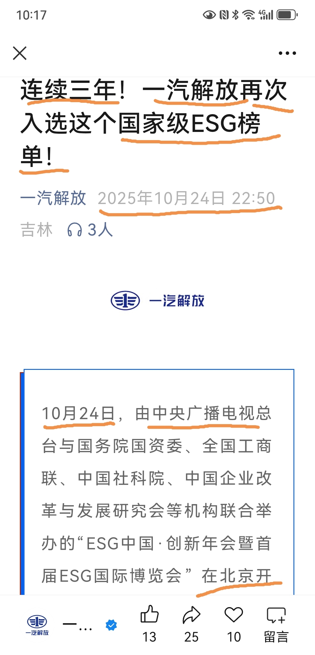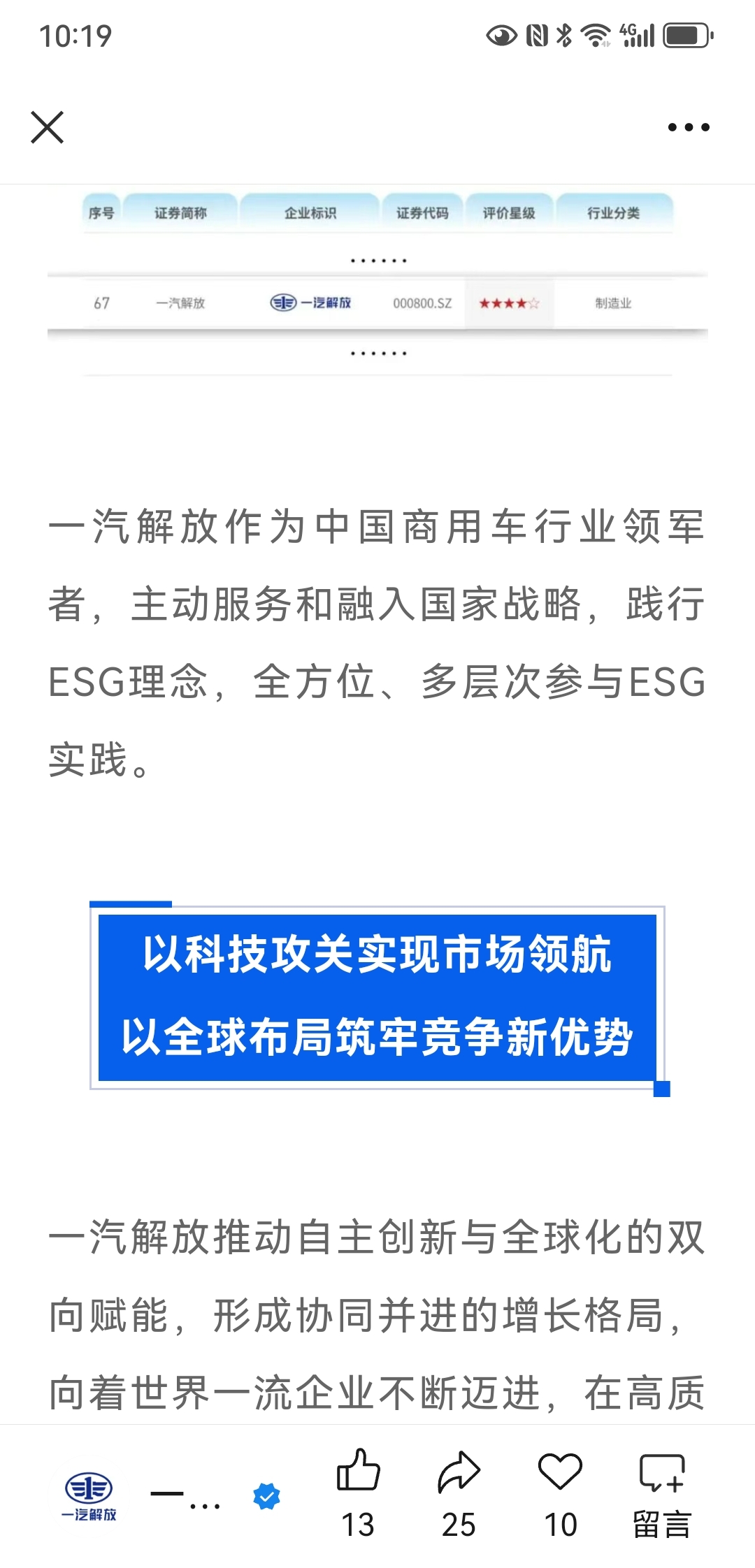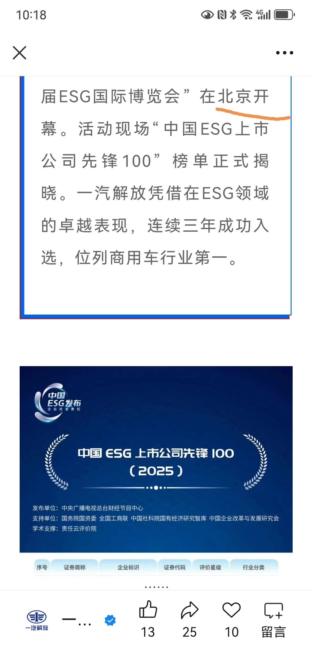 周末利好资讯:一汽解放再次入榜国家级ESG
