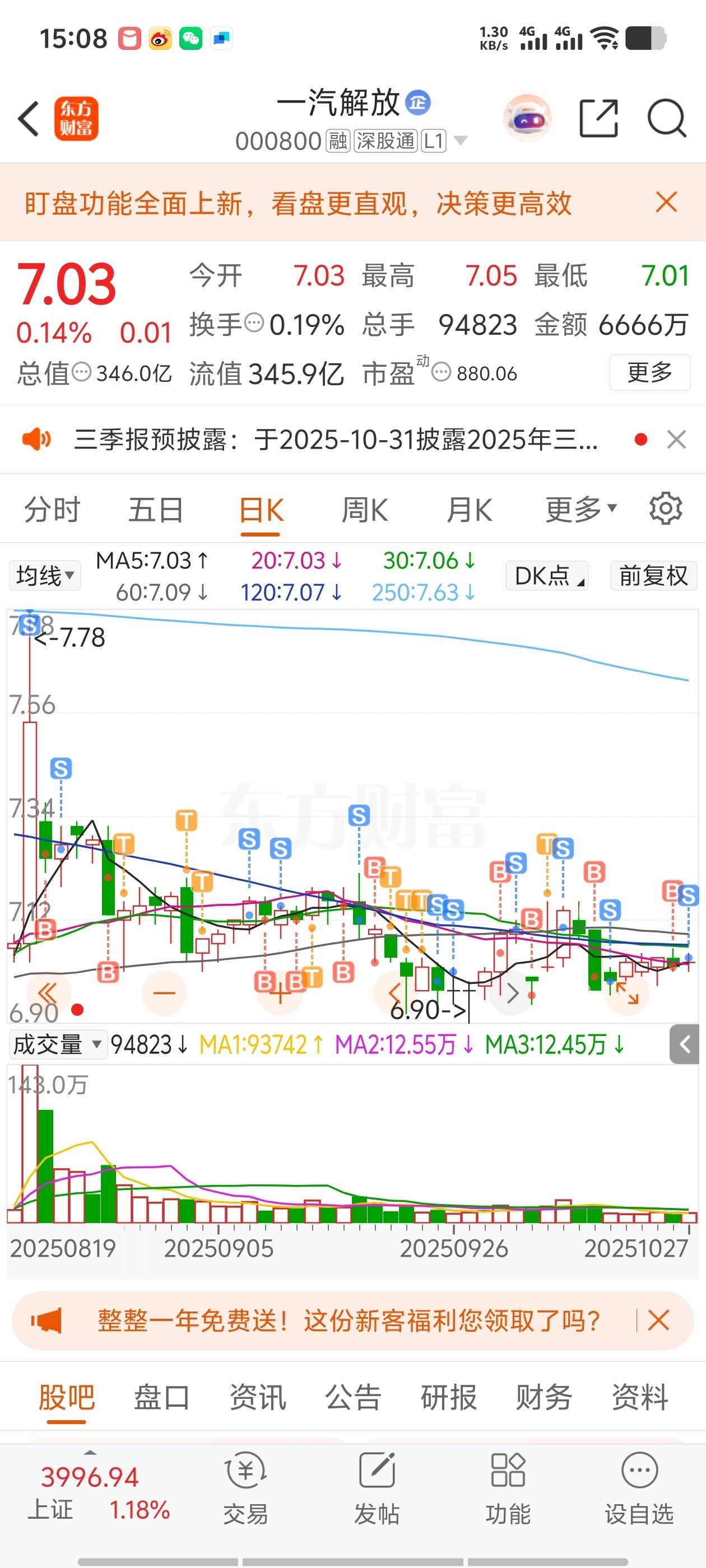 $一汽解放(SZ000800)$ 这个股每天两分钱很容易的。你自己守株待兔天天怨天尤人,人家成本5元你10元。埋怨有什么用?