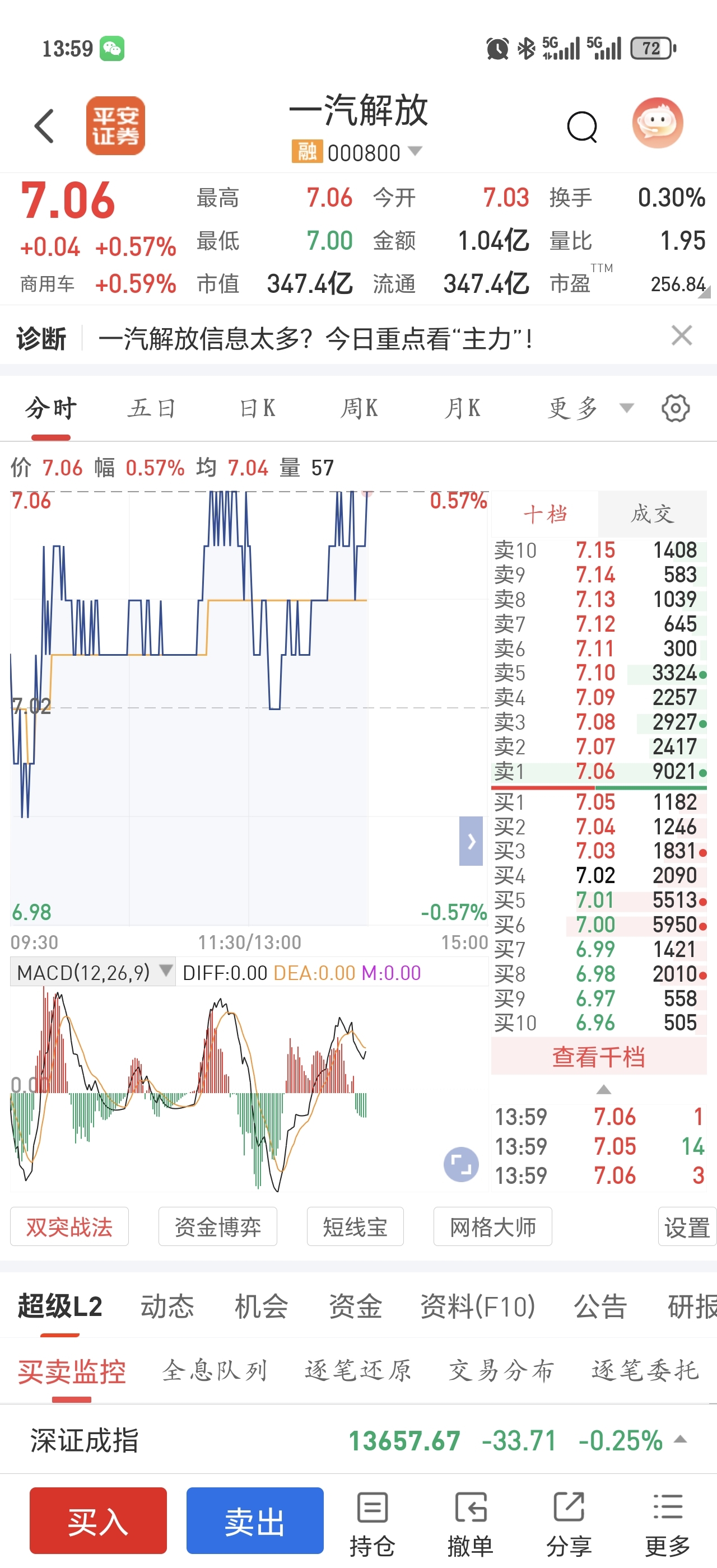 $一汽解放(SZ000800)$ 触犯什么天条了,一万手压单