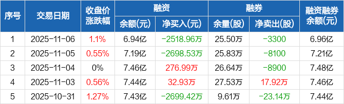 一汽解放:融资净偿还2518.96万元,融资余额6.94亿元(11-06)